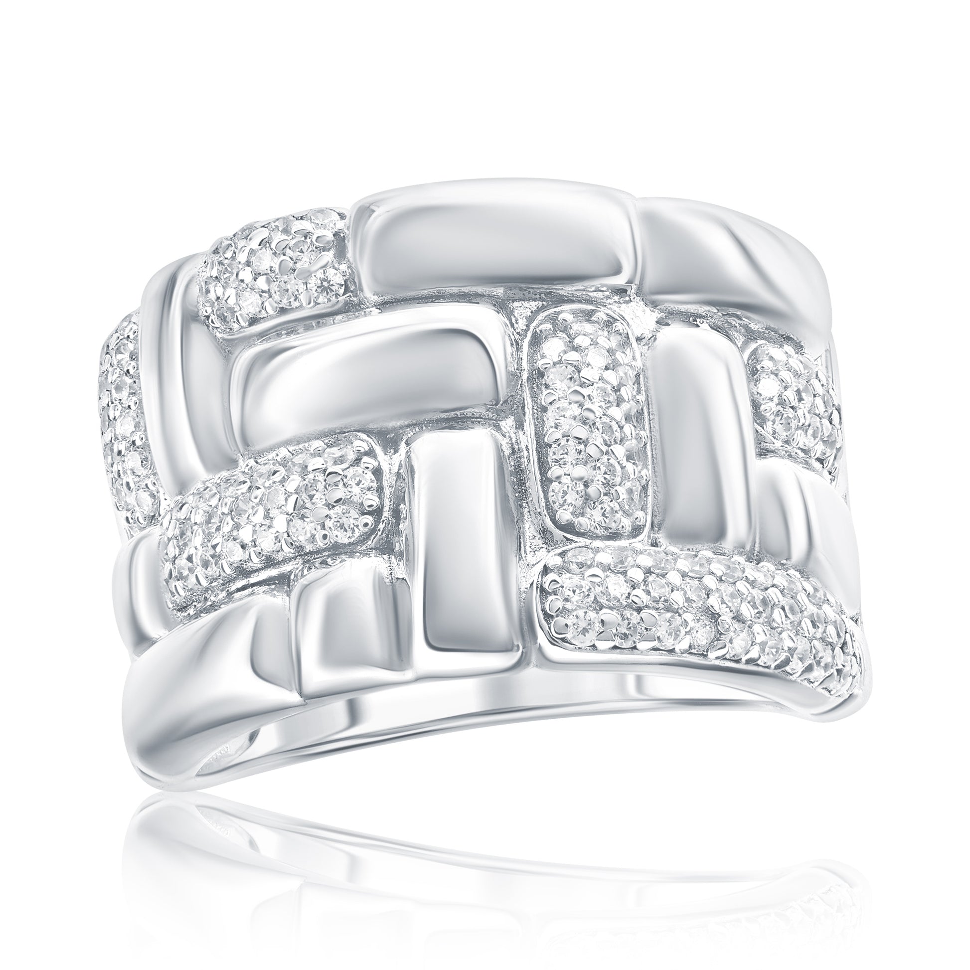 Suzy Levian Sterling Silver & White Cubic Zirconia Pave Checkered Woven Band Ring