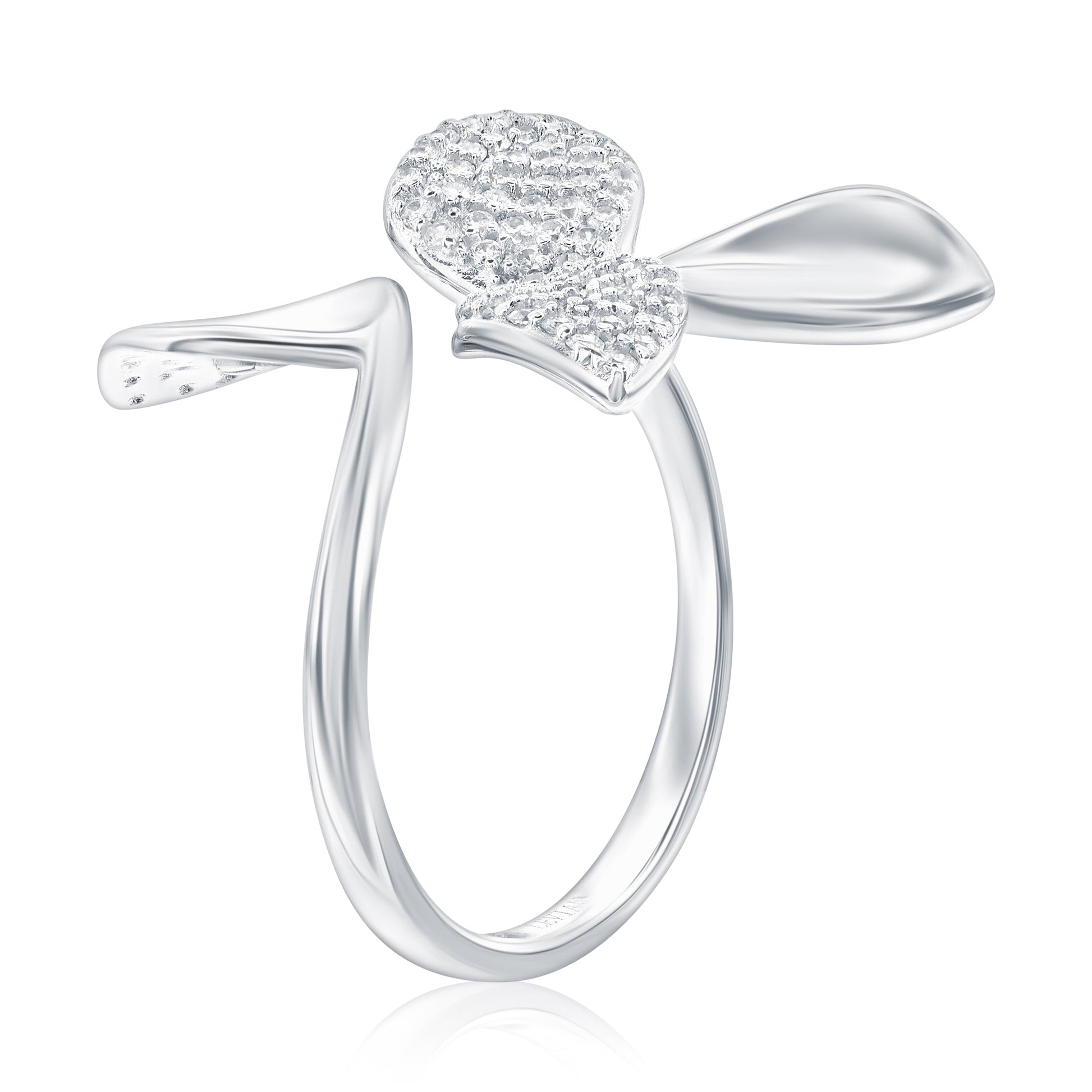 Suzy Levian Sterling Silver Cubic Zirconia Abstract Open Flower Ring