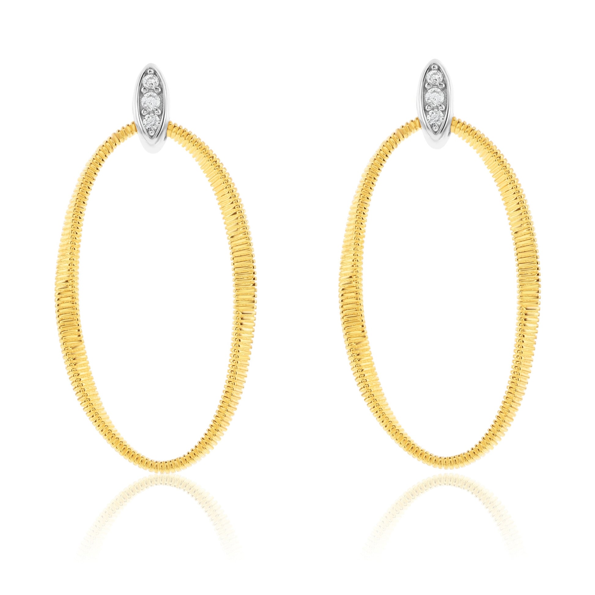 Suzy Levian The Golden Helix Yellow Sterling Silver & White Cubic Zirconia Oval Drop Earrings