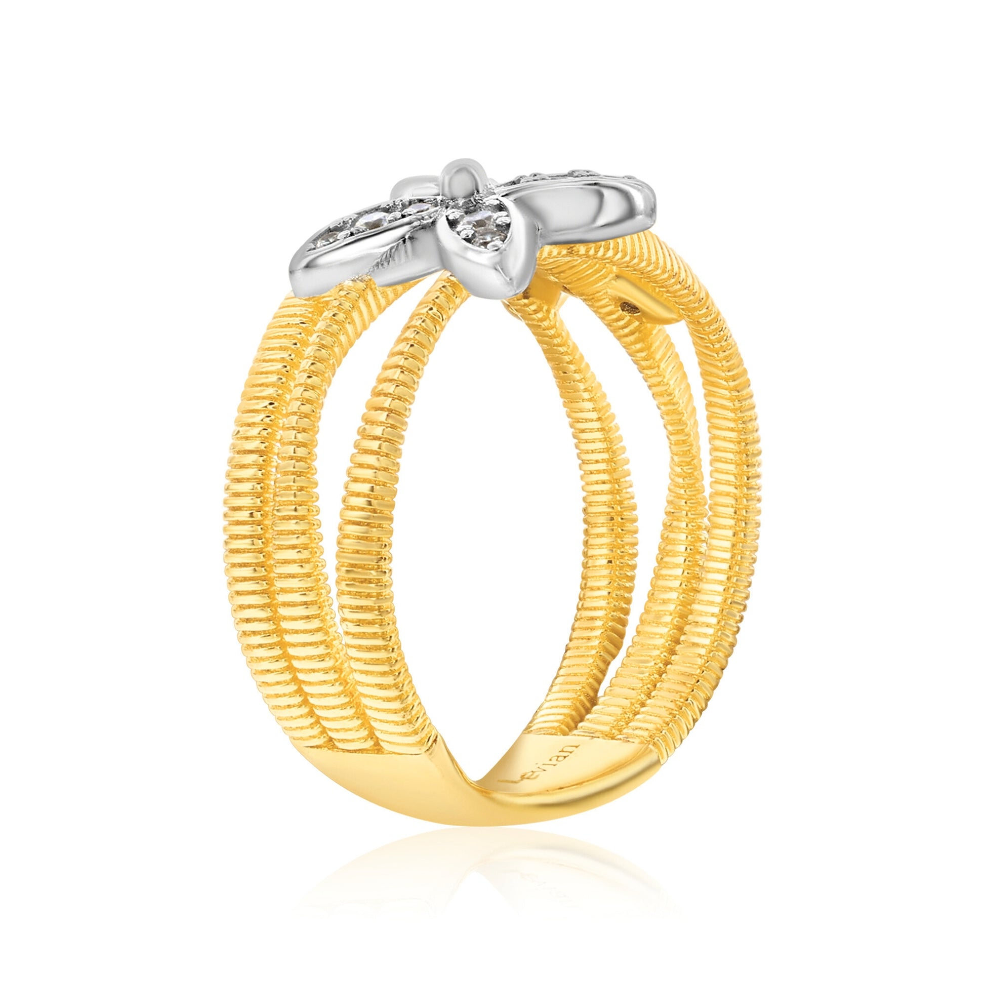 Suzy Levian The Golden Helix Yellow Sterling Silver White Cubic Zirconia Coil Three Row Double Flower Ring