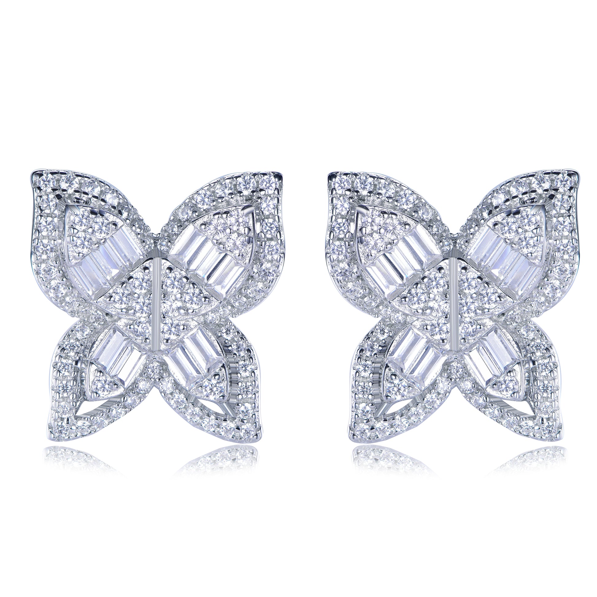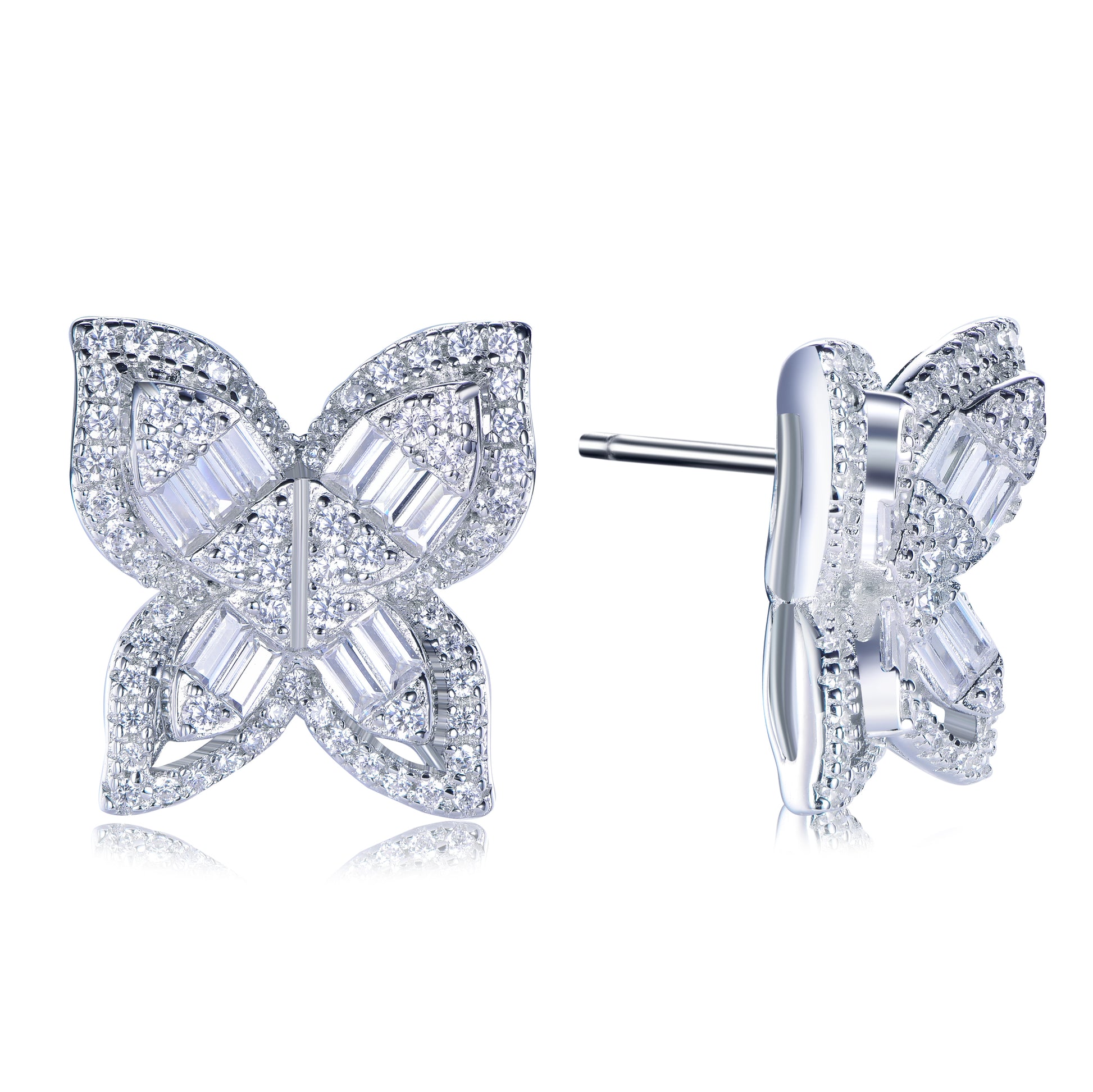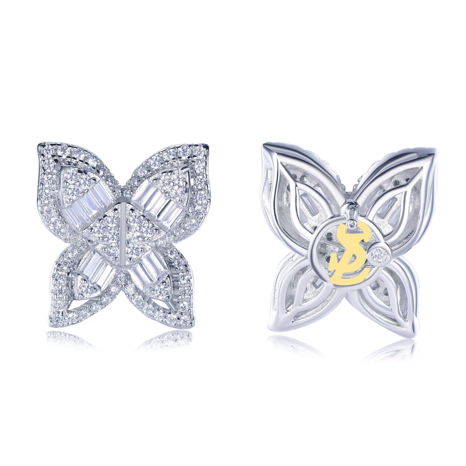 These gorgeous Suzy Levian earrings feature timeless beauty in a breathtaking design. These earrings features a multi-cut large butterfly design. These earring contain a mix of white baguette cut, and round cut cubic zirconia gemstones, that are set in sterling silver with a high polish finish for extra shine. These earrings are perfect for all occasions. These earrings were created with a message. By creating jewelry that is beautiful inside and out, Suzy Levian sets an SL logo at the back of earring to inspire women to let their beauty shine from bottom to top.