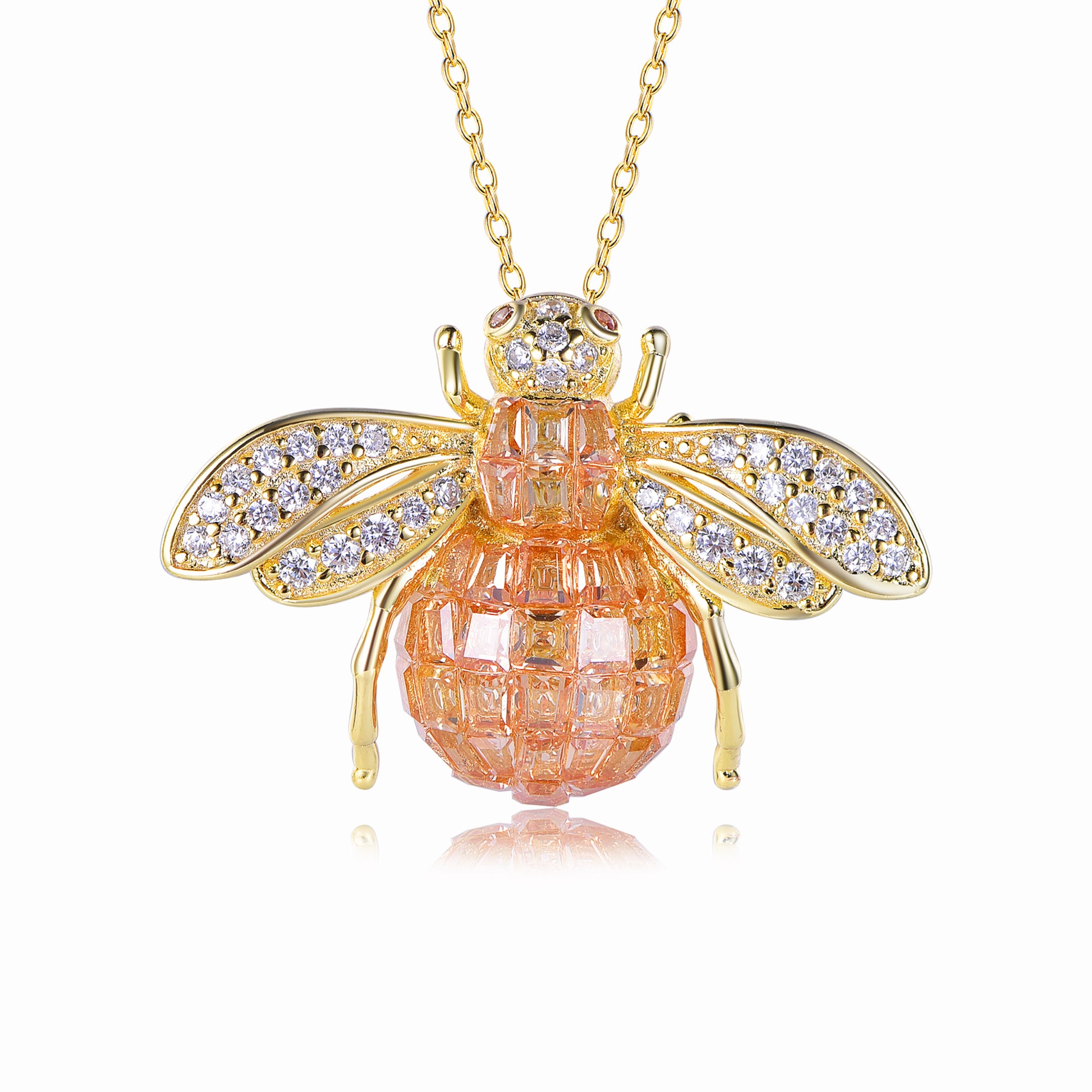 Suzy Levian Yellow Sterling Silver Invisible Set Orange White Cubic Zirconia Bumble Bee Pendant