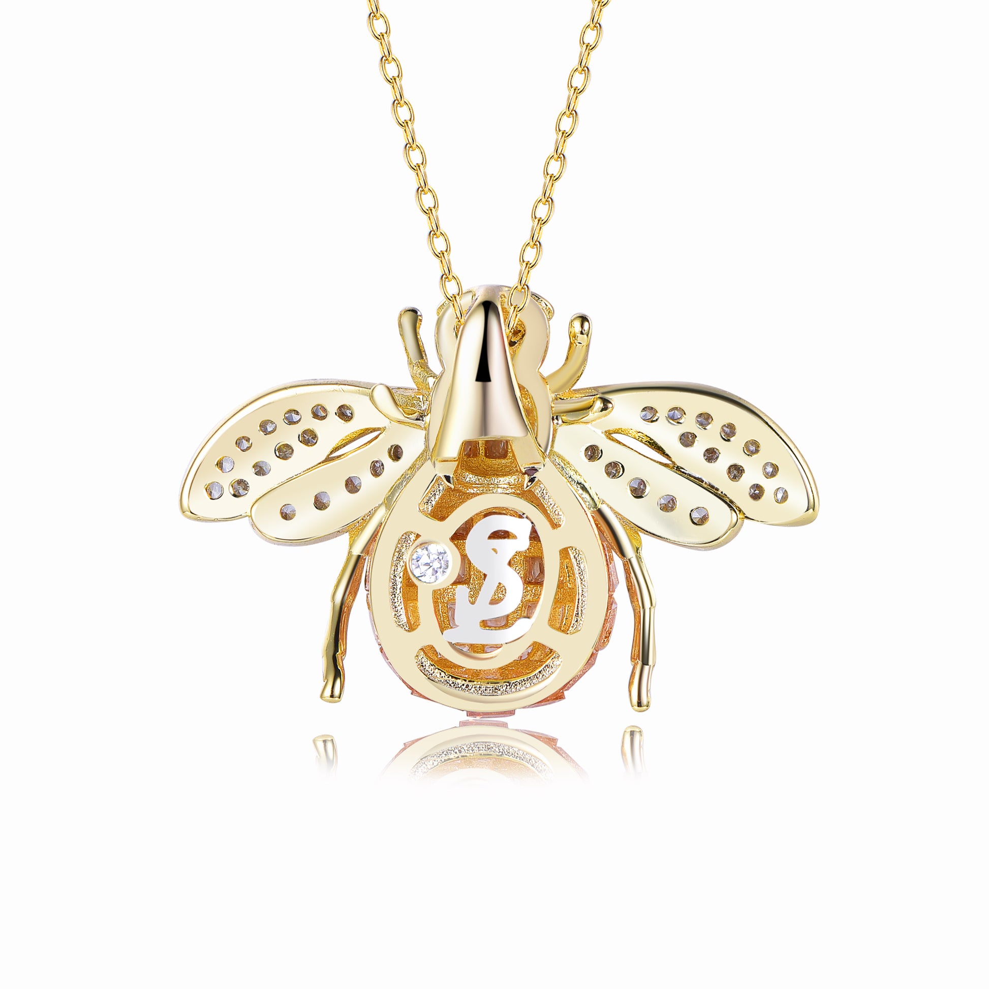 This gorgeous Suzy Levian pendant features timeless beauty in a breathtaking design. This gorgeous pendant features an invisible set bumble bee design, that contains invisible set orange baguette cubic zirconia's, and white cubic zirconia's. All the gemstones are set in yellow sterling silver with a high polish finish for extra shine. The unique invisible setting gives the pendant a flush smooth look! It is the perfect pendant for all occasions. This pendant was created with a message. By creating jewelry that is beautiful inside and out, Suzy Levian sets an SL logo at the bottom of every pendant to inspire women to let their beauty shine from the inside out.