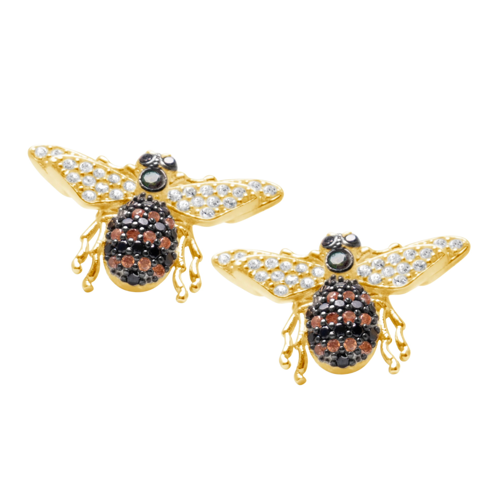 These gorgeous Suzy Levian earrings feature timeless beauty in a breathtaking design. These earrings feature a bumble bee design, of white, black, brown, and green round cubic zirconia. These beautiful earrings are set in yellow sterling silver with a high polish finish for extra shine. These earrings are perfect for all occasions. These earrings were created with a message. By creating jewelry that is beautiful inside and out, Suzy Levian sets an SL logo at the back of earring to inspire women to let their beauty shine from bottom to top.