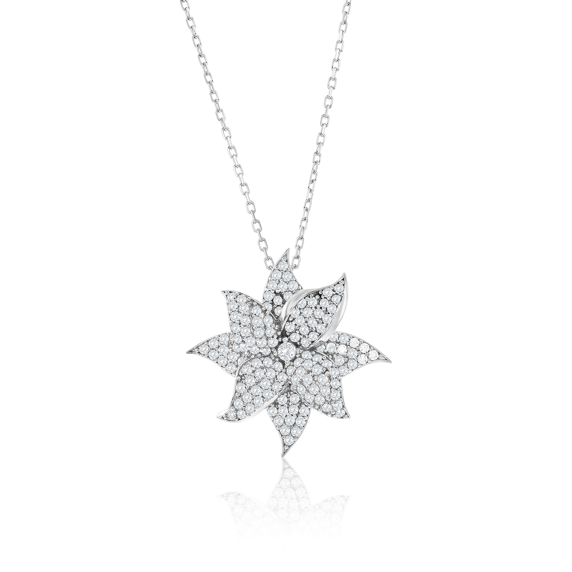 Suzy Levian White Sterling Silver White Cubic Zirconia Large Pave Flower Pendant