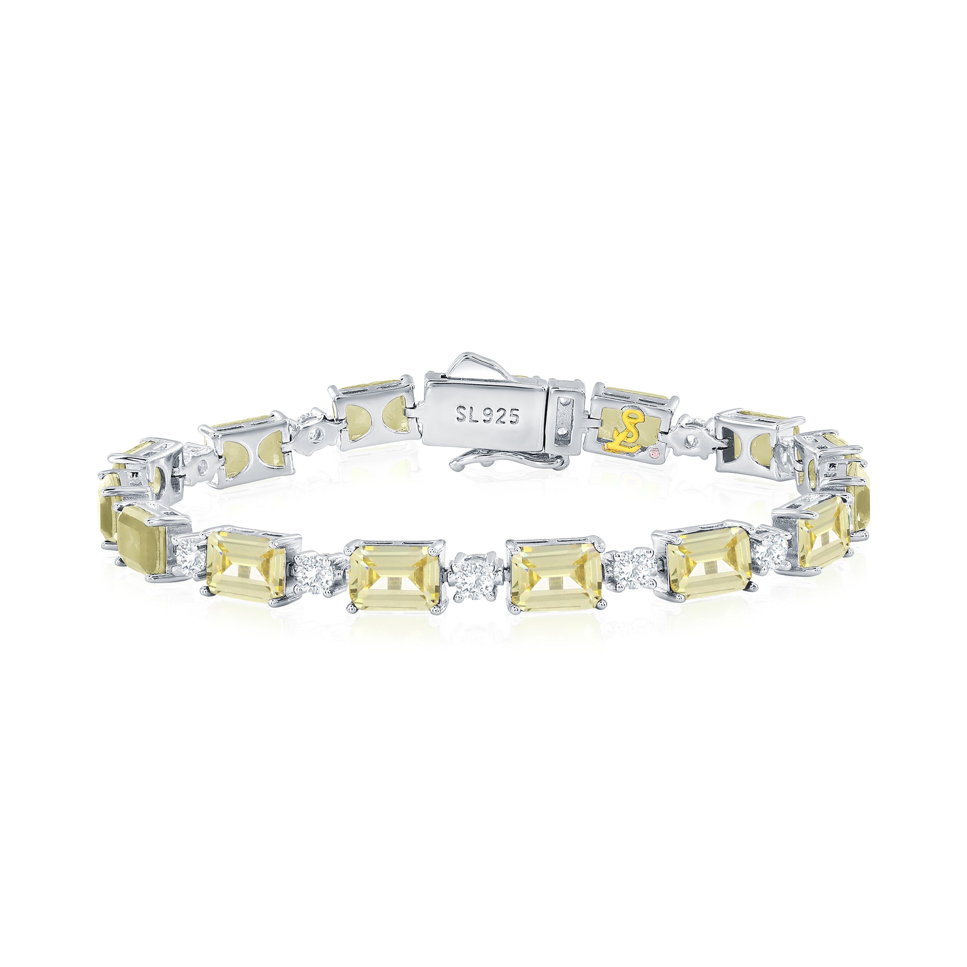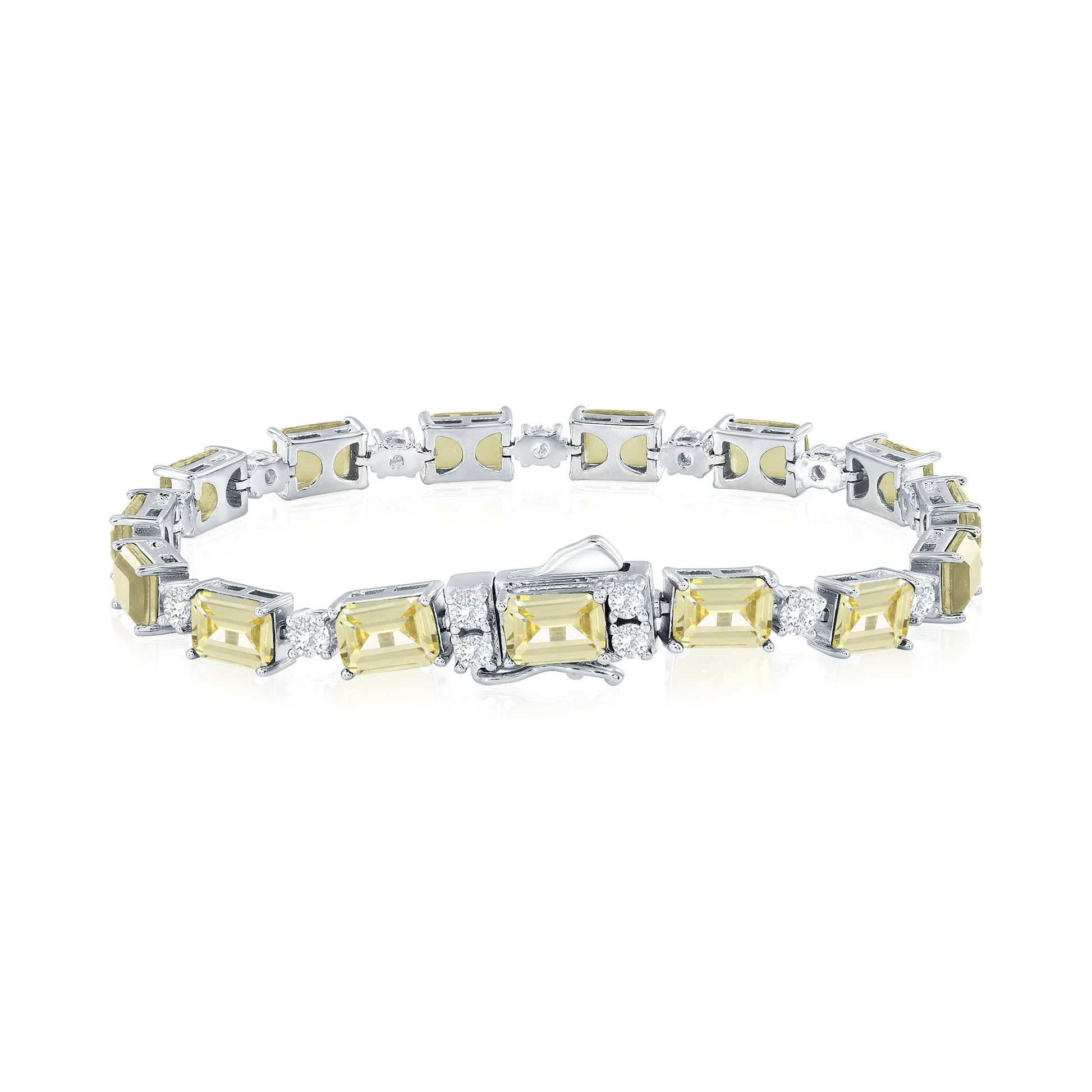 Suzy Levian Sterling Silver Gala Yellow Emerald Cut White Cubic Zirconia Tennis Bracelet