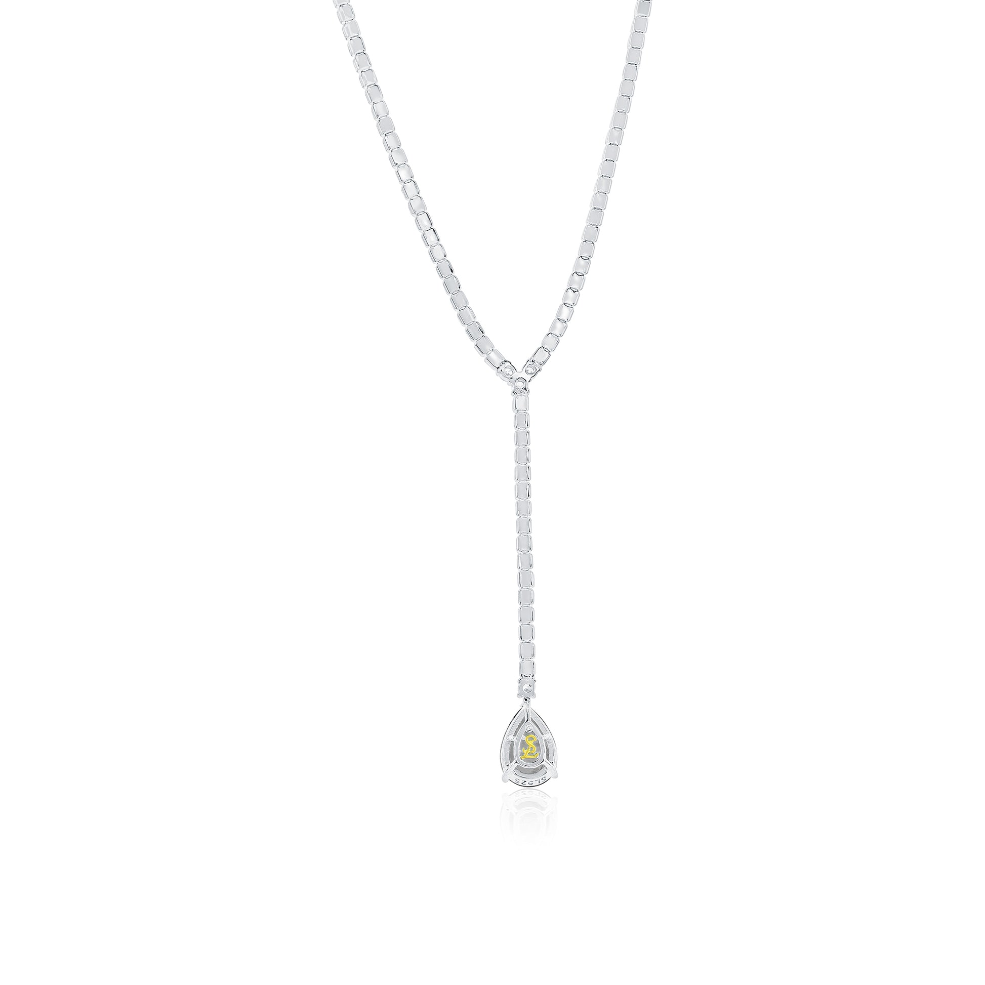 The timeless elegance of this gala collection lariat tennis necklace converges with a large beautiful white pear shape cubic zirconia, and white cut cubic zirconia gemstones to create a breathtakingly elegant design. Crafted in sterling silver an estimated 166 glistering white round cut cubic zirconia gemstone embezzle your neck with a a large pear shape white cubic zirconia estimated at 5.41cttw. This timeless, royal design is finished with an 18k yellow gold SL logo and a Suzy Levian Secret pink cubic zirconia in the back gallery. This necklace is secured with a safety lock closure to ensure a tight fit. This necklace is designed to encourage women to embrace their own hidden inner beauty as well!