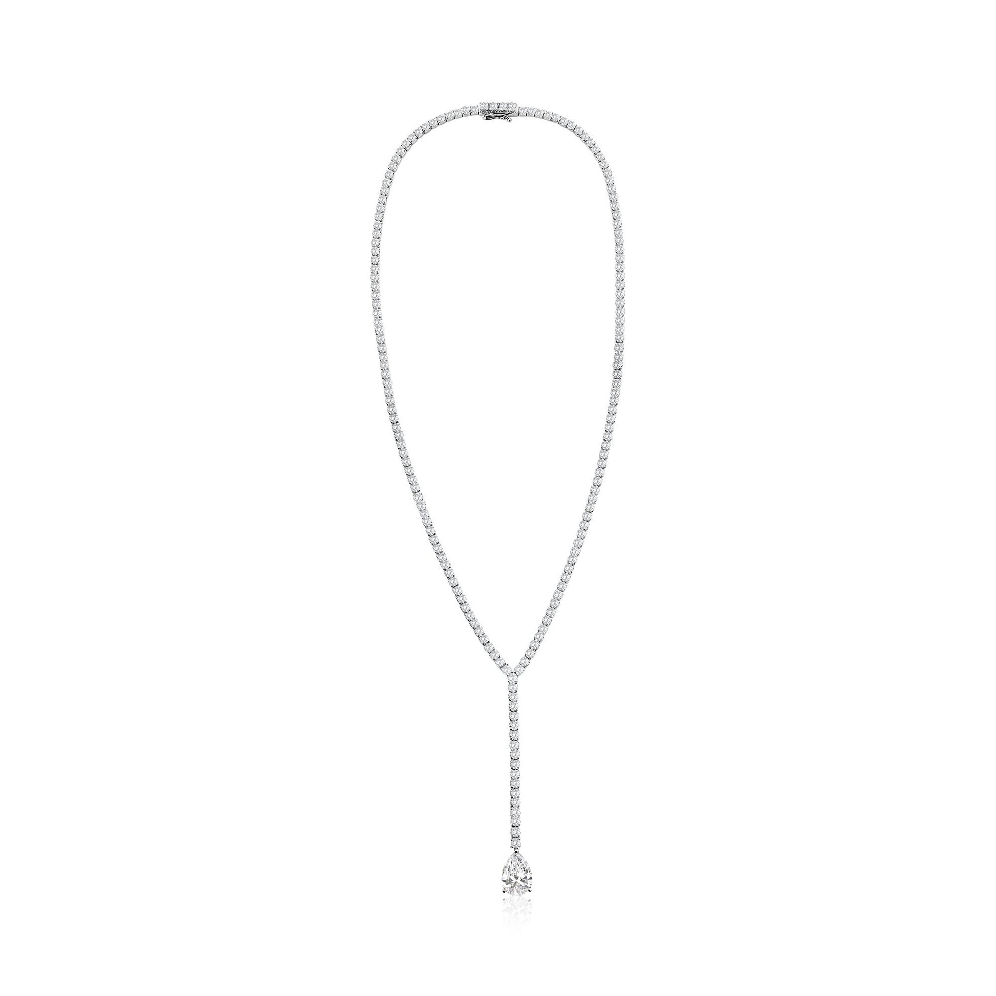 Suzy Levian Sterling Silver Gala White Pear-Cut & White Cubic Zirconia Lariat Tennis Necklace