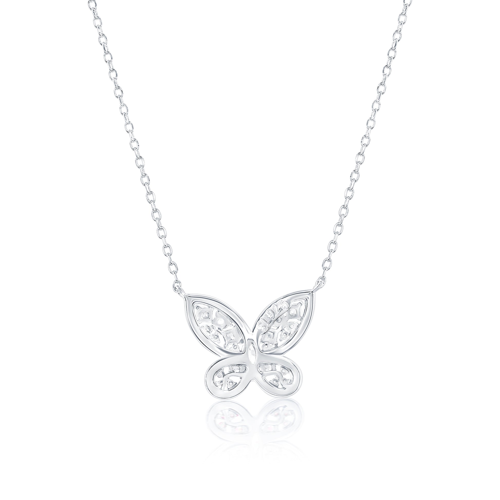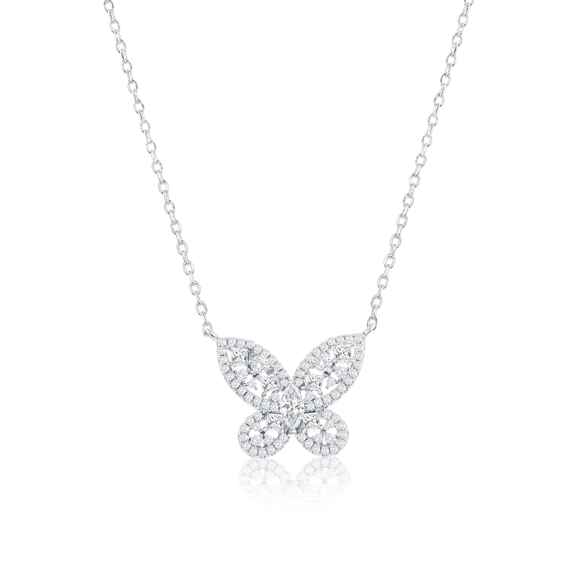 Suzy Levian Sterling Silver White Cubic Zirconia Pave Butterfly Cluster Necklace