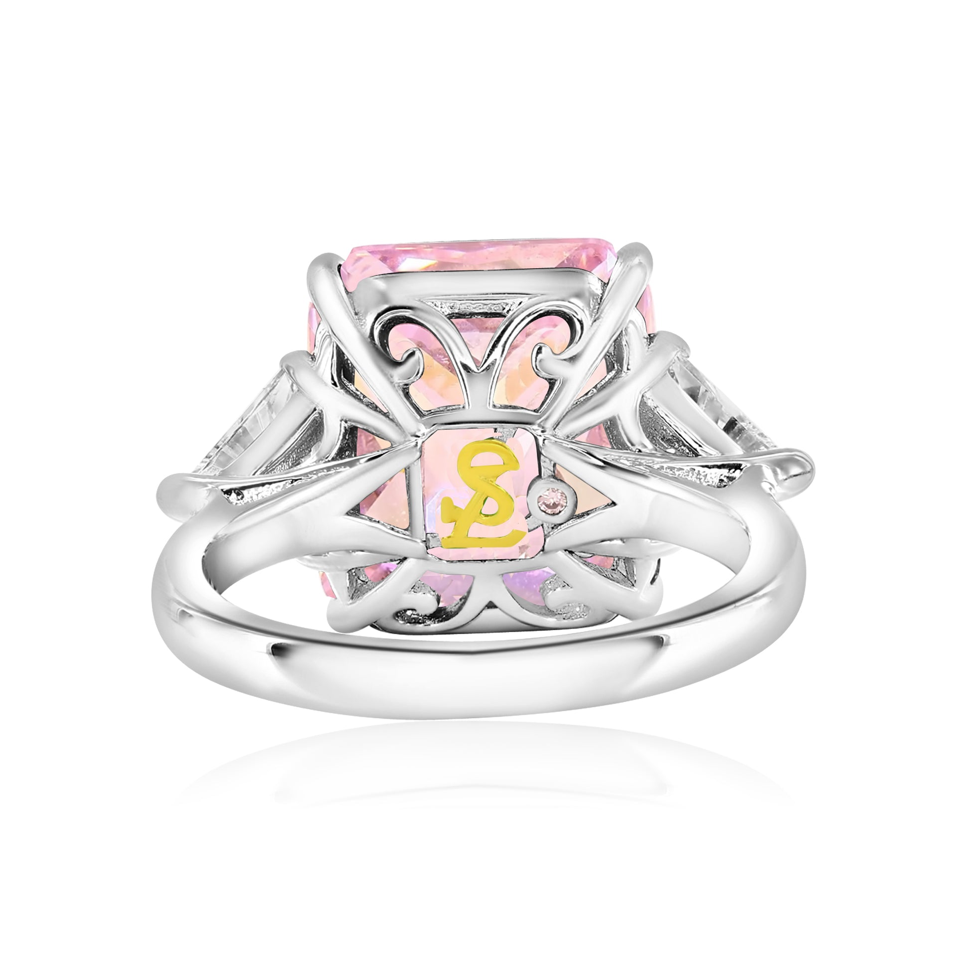 Suzy Levian Sterling Silver Gala Firework Emerald Cut Pink Cubic Zirconia Engagement Ring