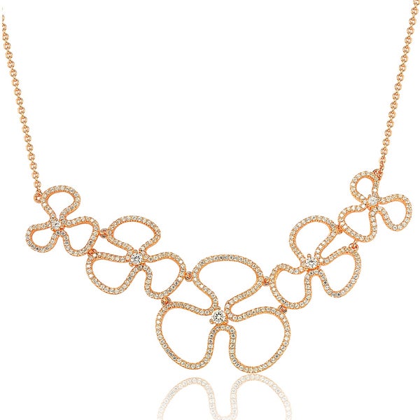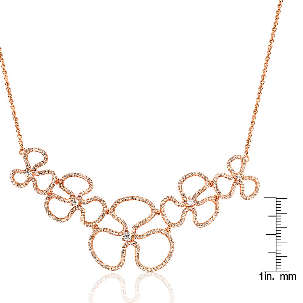 Suzy Levian Rosed Sterling Silver Cubic Zirconia Floral Thin Necklace