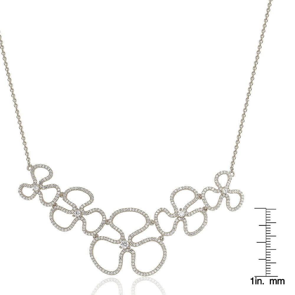 Suzy Levian Sterling Silver Cubic Zirconia Floral Thin Necklace