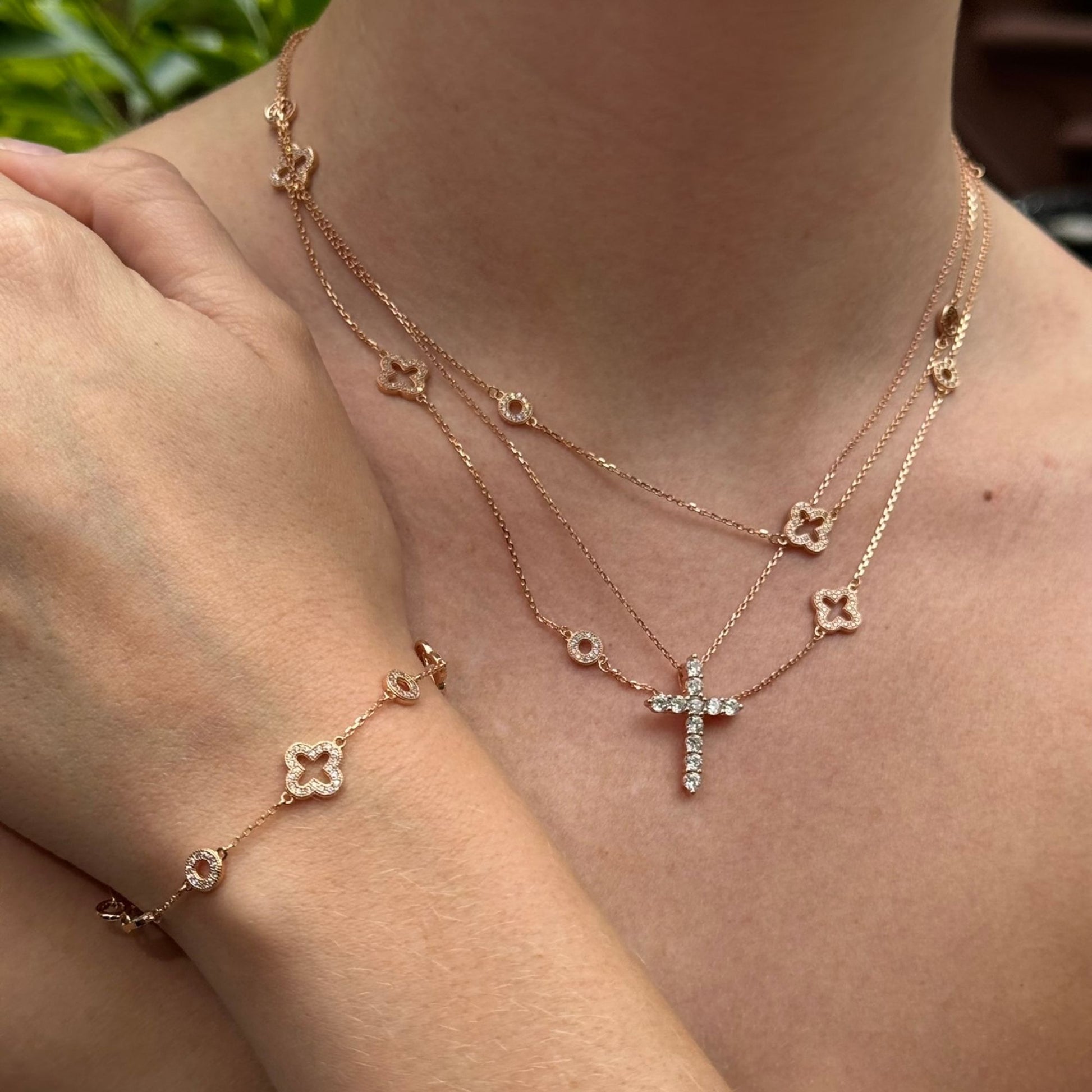 Suzy Levian Rose Sterling Silver White Cubic Zirconia Clover and Circles Bracelet