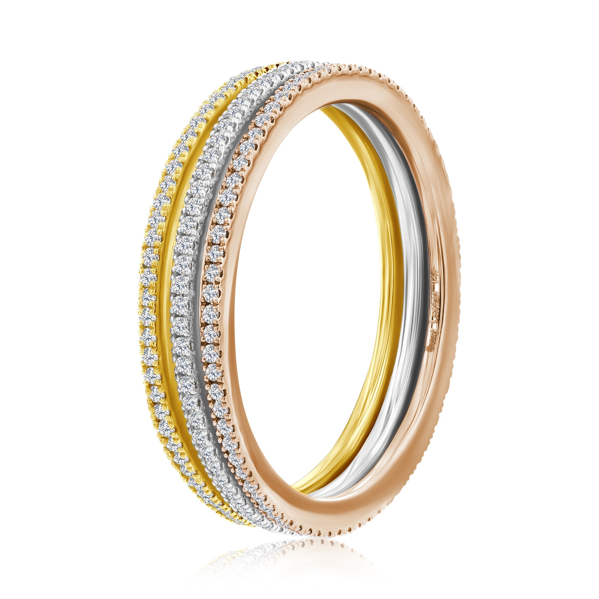 Suzy Levian 14k Tri Tone Gold .41 cttw Diamond 3-piece Set Eternity Band Rings