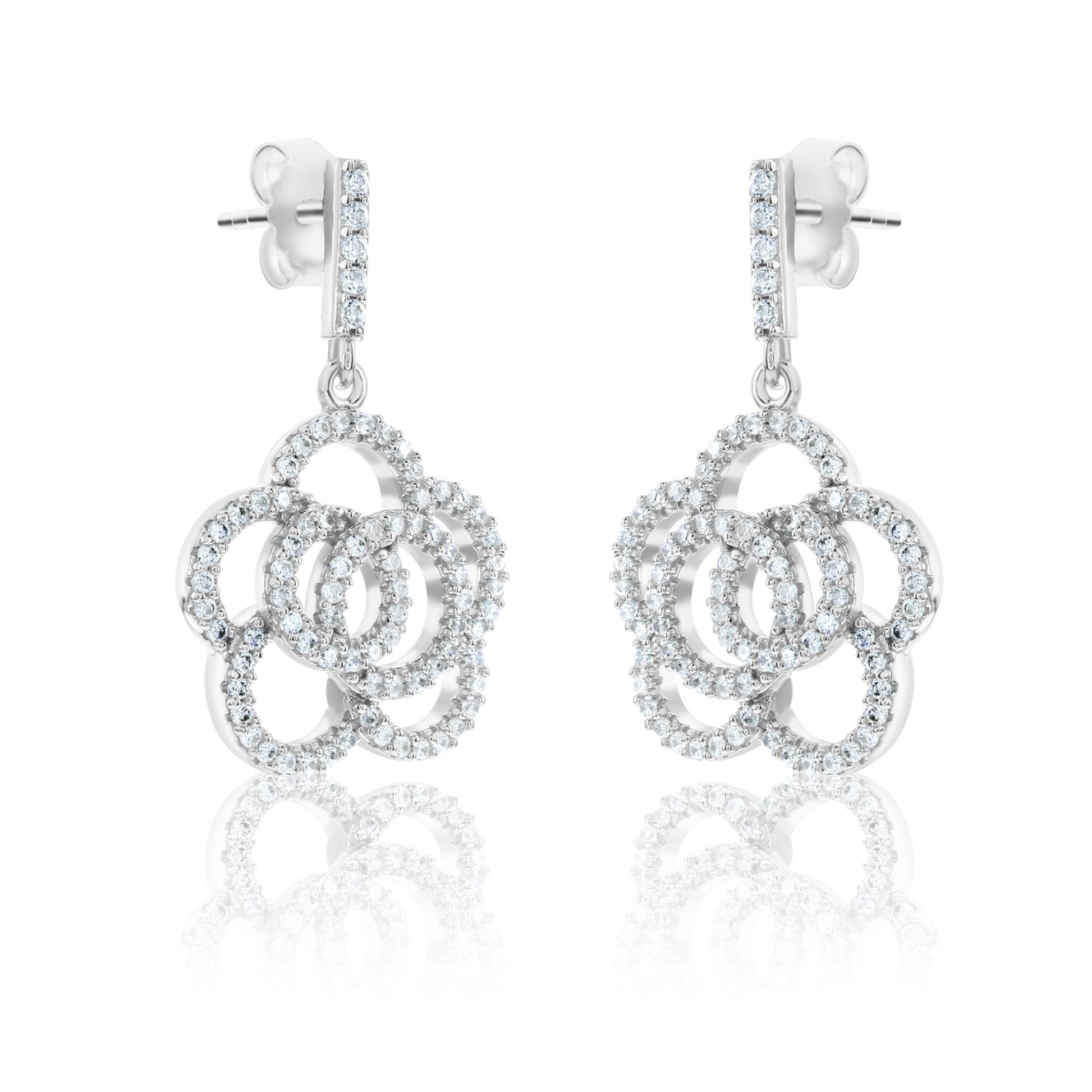 Suzy Levian Sterling Silver White Cubic Zirconia Pave Flower Drop Earrings