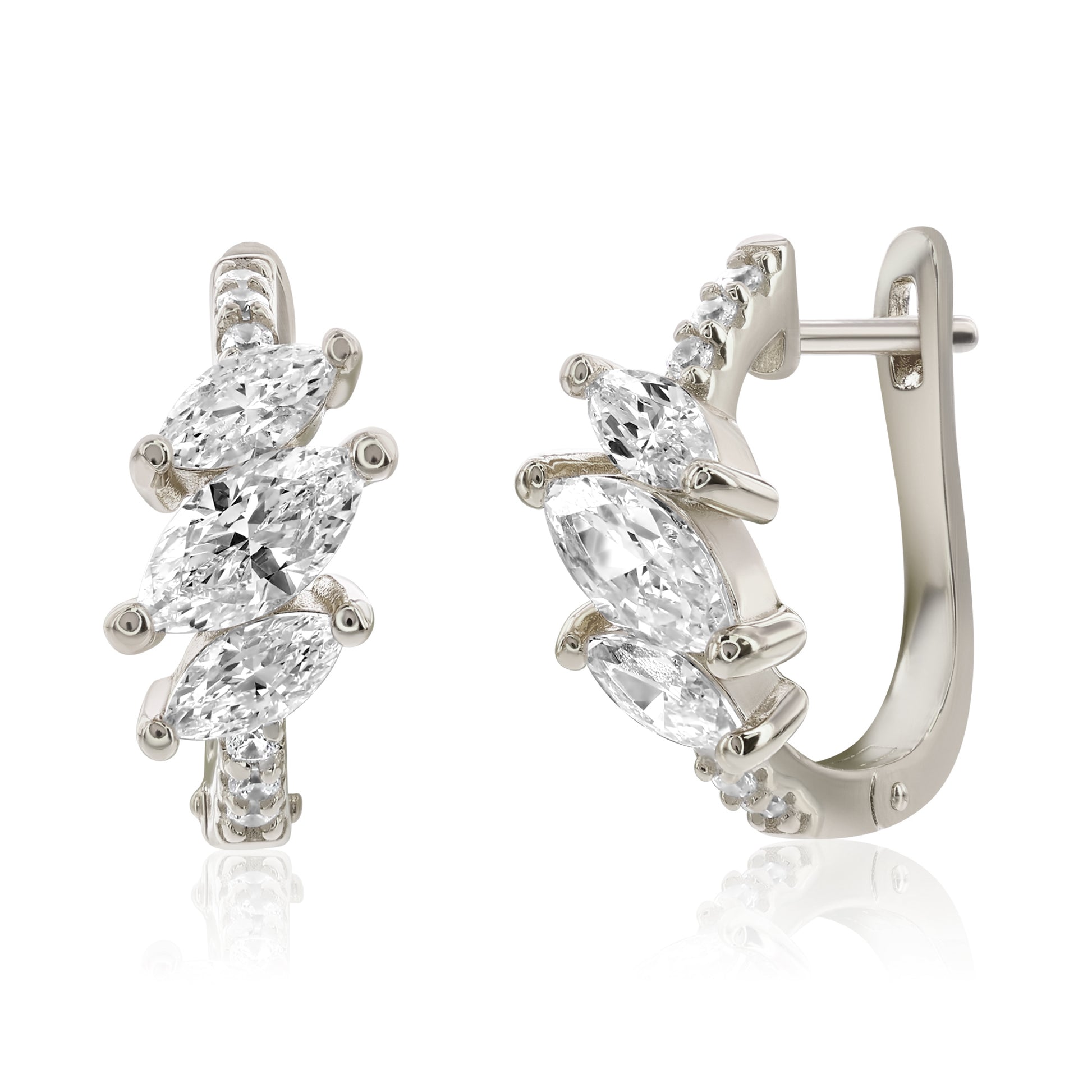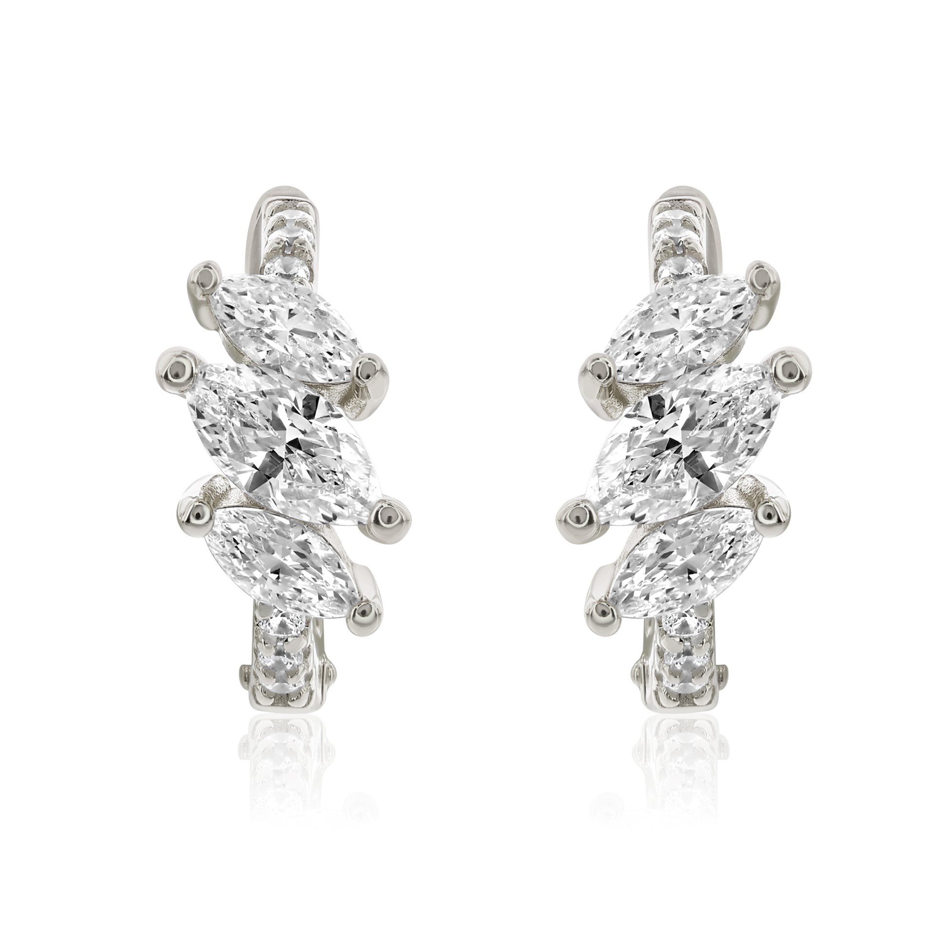 Suzy Levian White Sterling Silver & White Cubic Zirconia Pave Marquise Cut Huggie Hoop Earrings