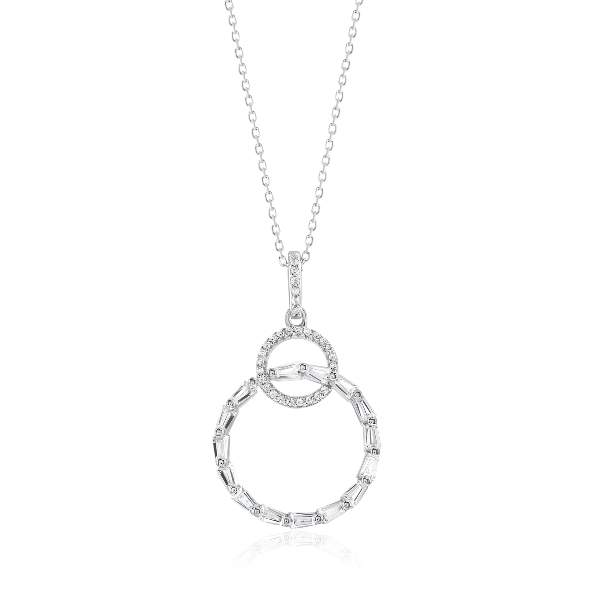 Suzy Levian Sterling Silver White Cubic Zirconia Interlocking Circle Pendant Necklace