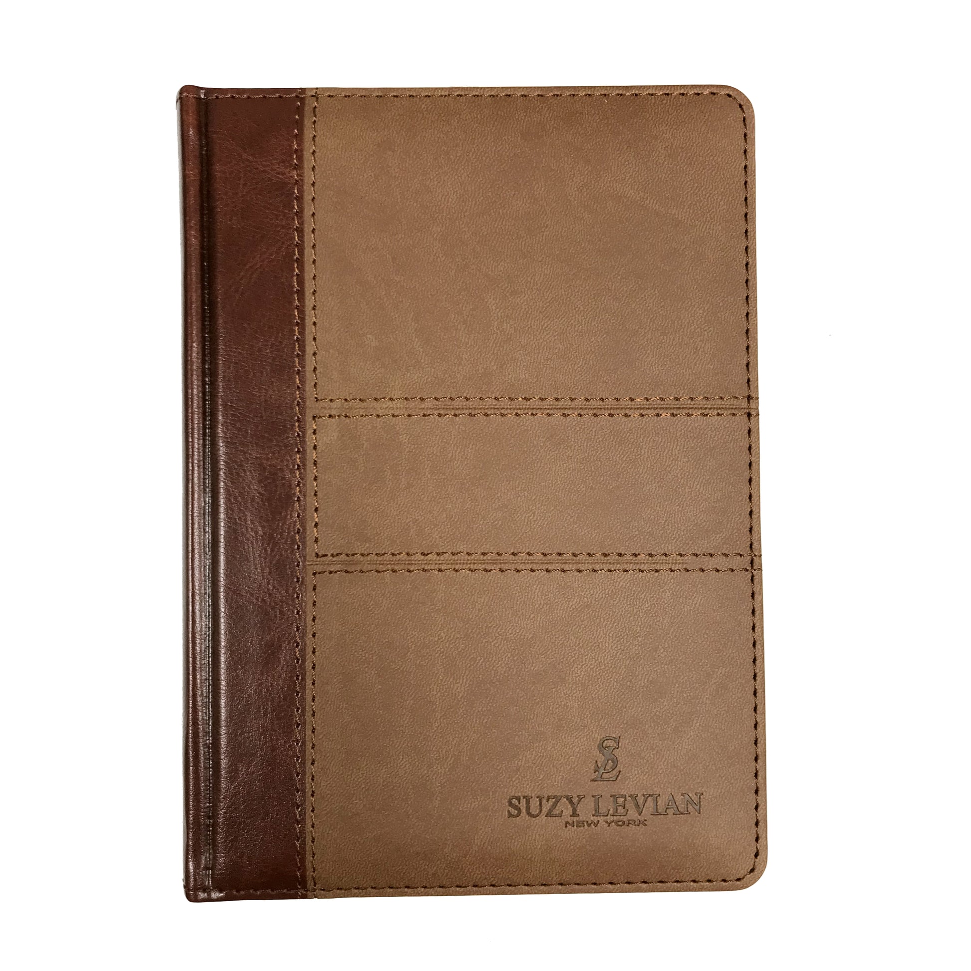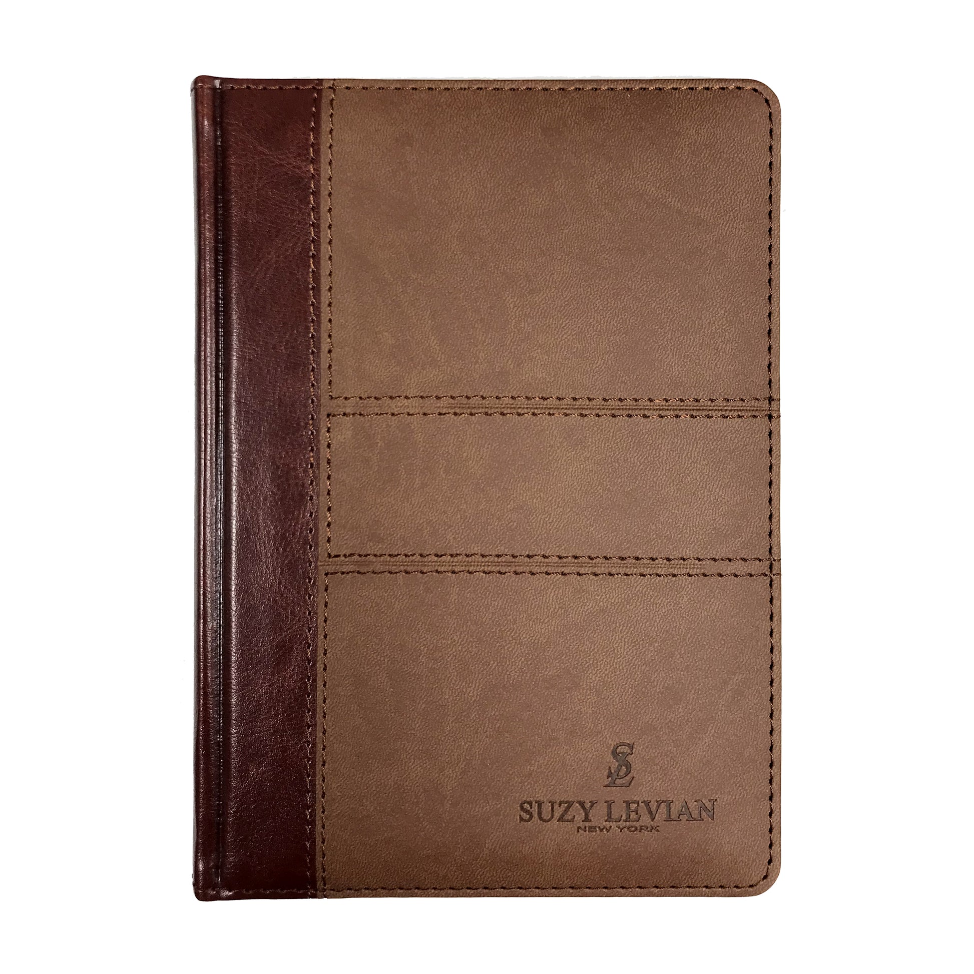 Perfect addition to any desk, this brown vegetarian leather Suzy Levian notebook will complement with class and style while allowing you to take quick notes.