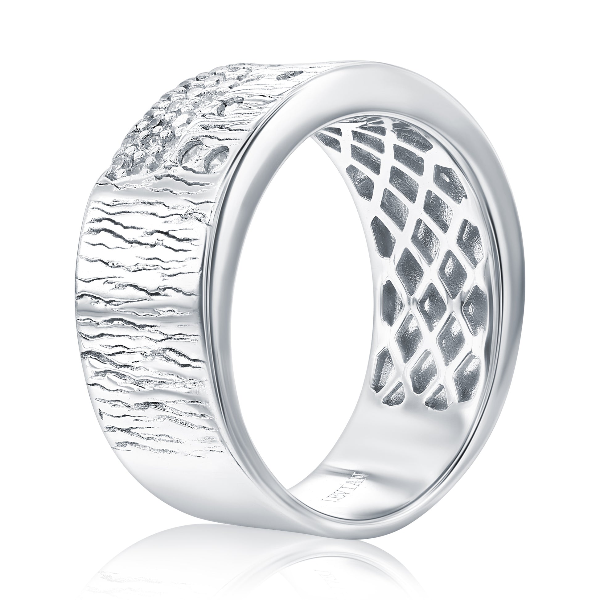Suzy Levian Sterling Silver Engraved White Cubic Zirconia Scattered Wide Cigar Band Ring