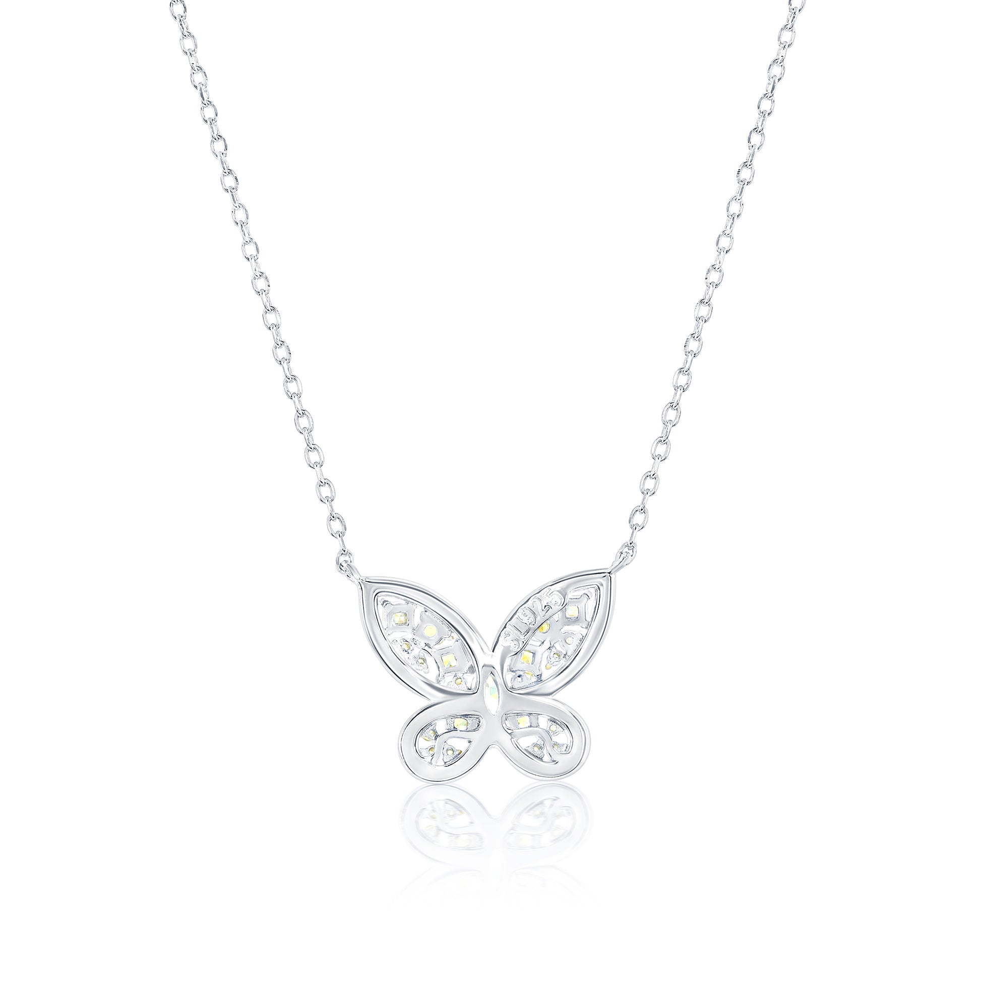 Suzy Levian Sterling Silver Gala Yellow & White Cubic Zirconia Pave Butterfly Cluster Necklace