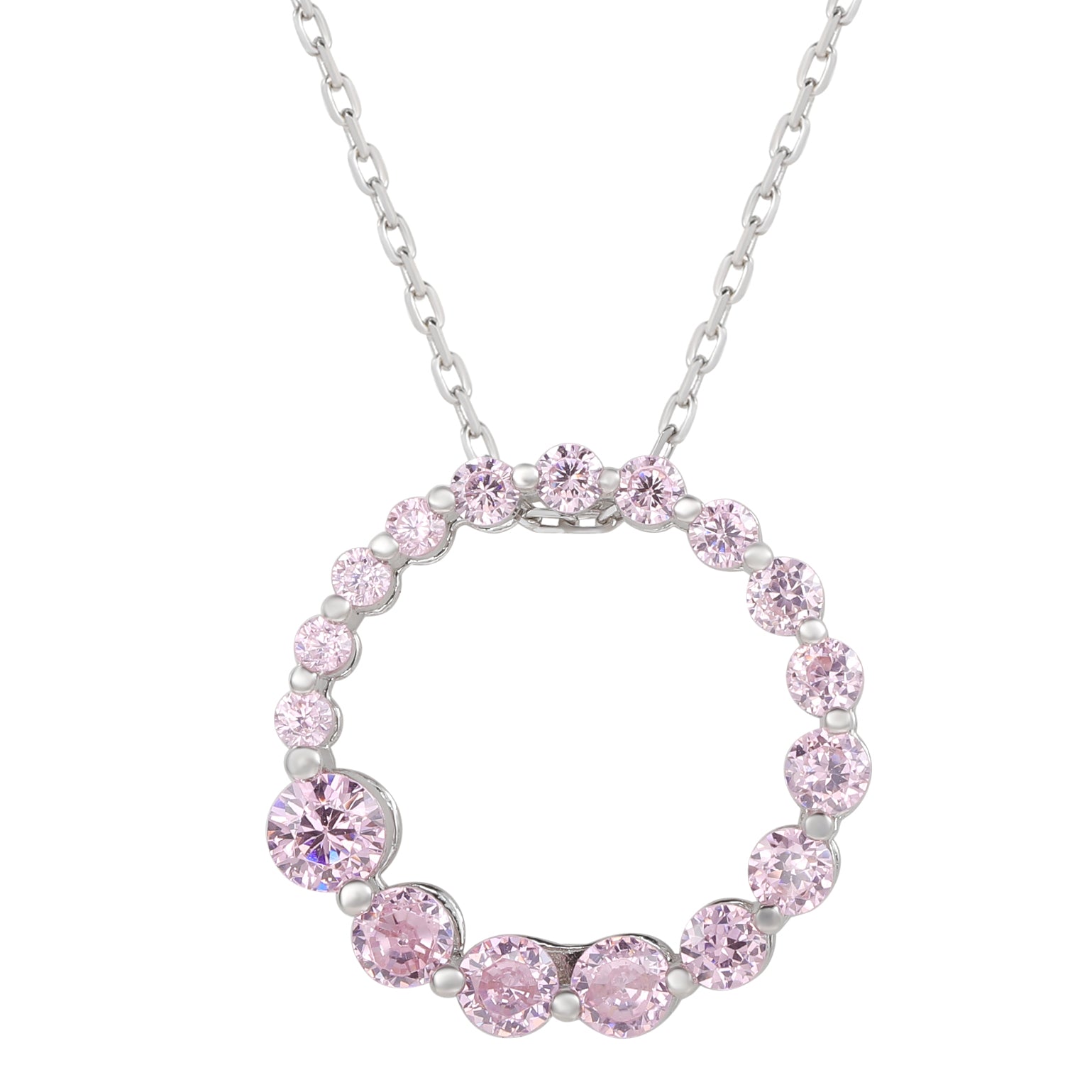 Suzy Levian Sterling Silver Pink Cubic Zirconia Circle Journey Necklace