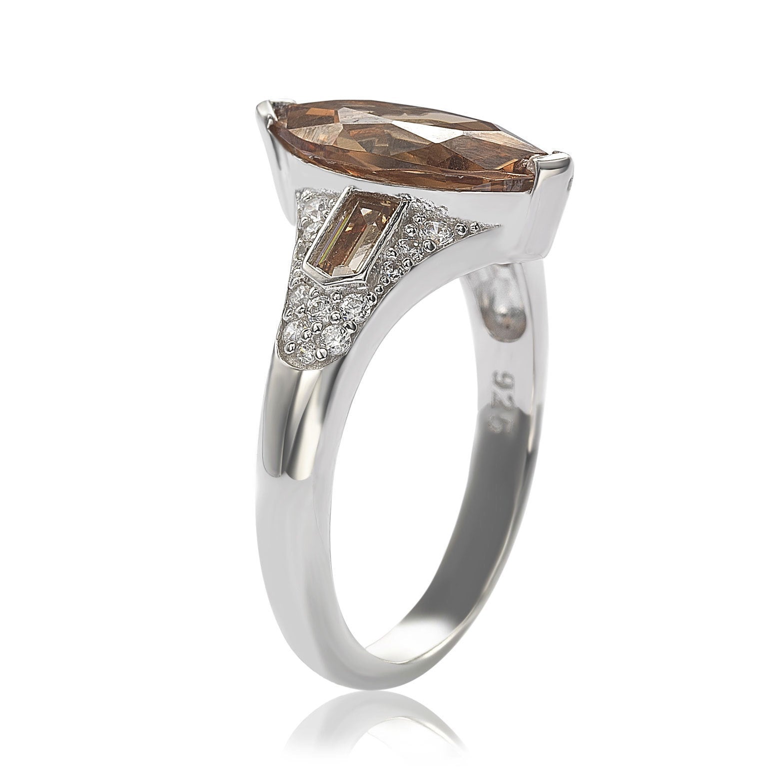 Suzy Levian Sterling Silver Brown Cubic Zirconia Marquise Ring