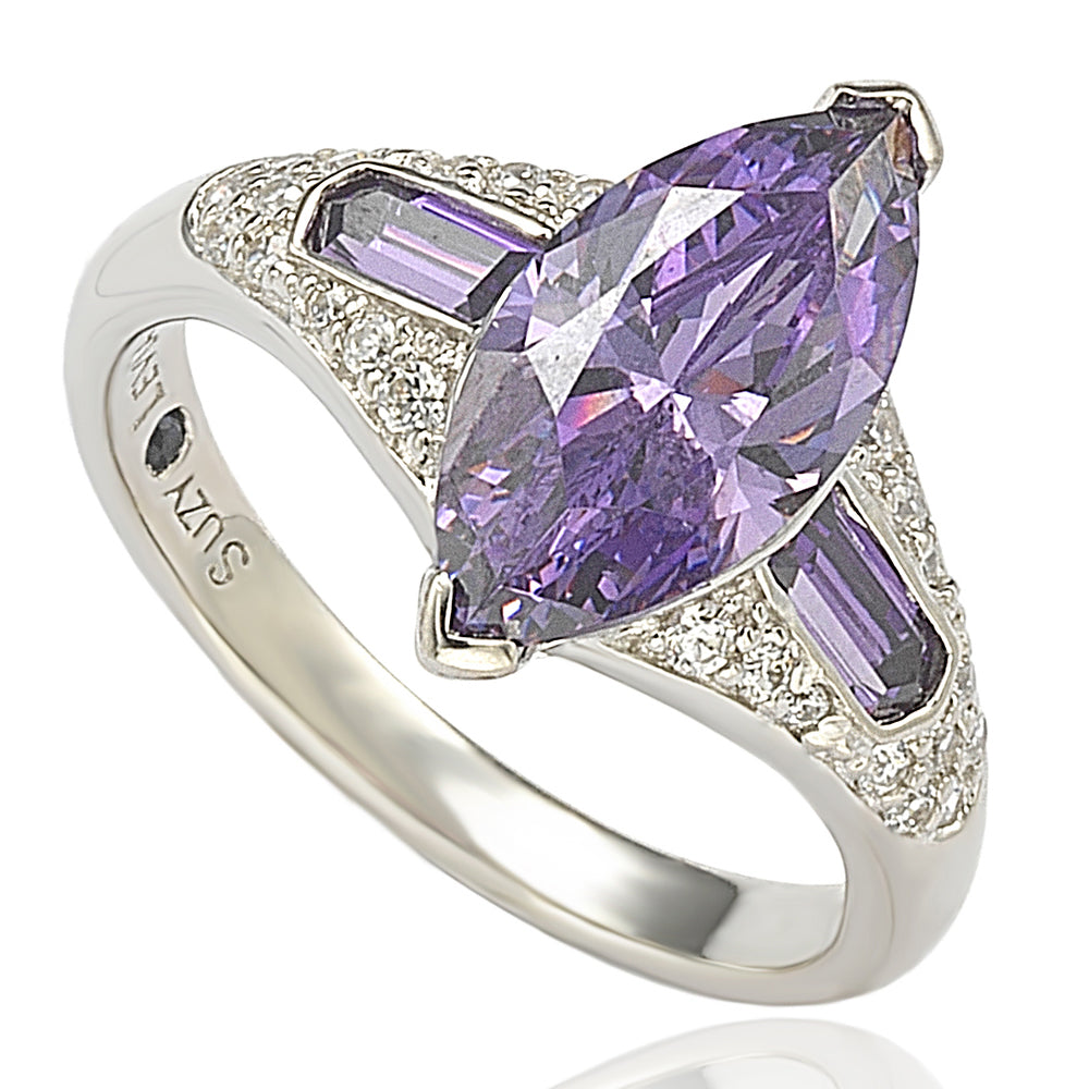 Suzy Levian Sterling Silver Purple Marquise Cubic Zirconia Ring