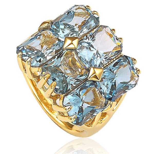 Suzy Levian 14k Gold plated Sterling Silver Emerald-cut Cubic Zirconia Ring