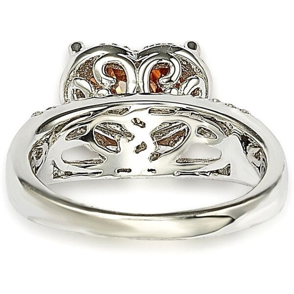 A heart-cut citrine gemstone is set beautifully inside four prongs for a captivating center design. A perfect gift for any occasion, the split shank of this ring features three rows of cubic zirconia gemstones along the sterling silver band. This ring is designed by Suzy Levian with a message. By creating jewelry that is beautiful inside and out, Suzy Levian's message is revealed through a hidden stone set inside the shank of this ring to empower women to discover their inner strength, power and beauty. This ring has a closed under-gallery for comfort fit with Suzy Levian's SL logo.