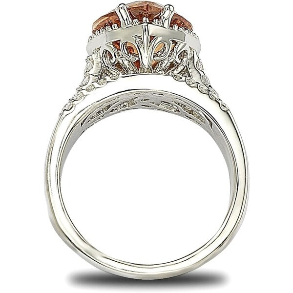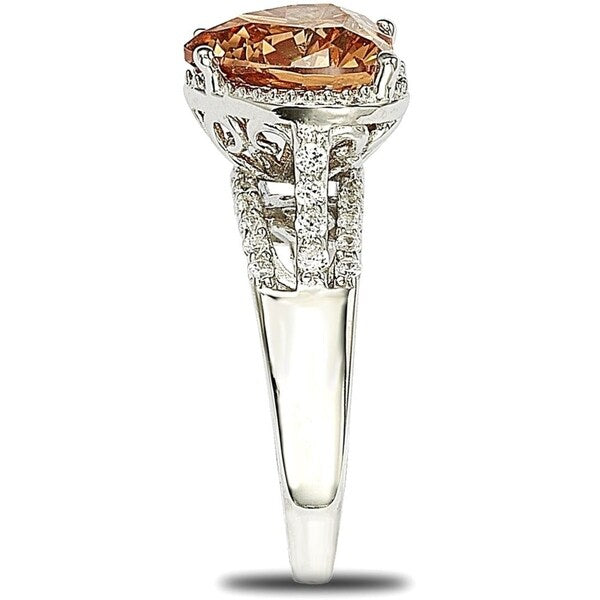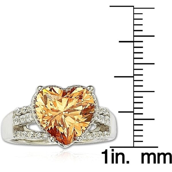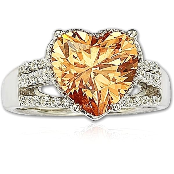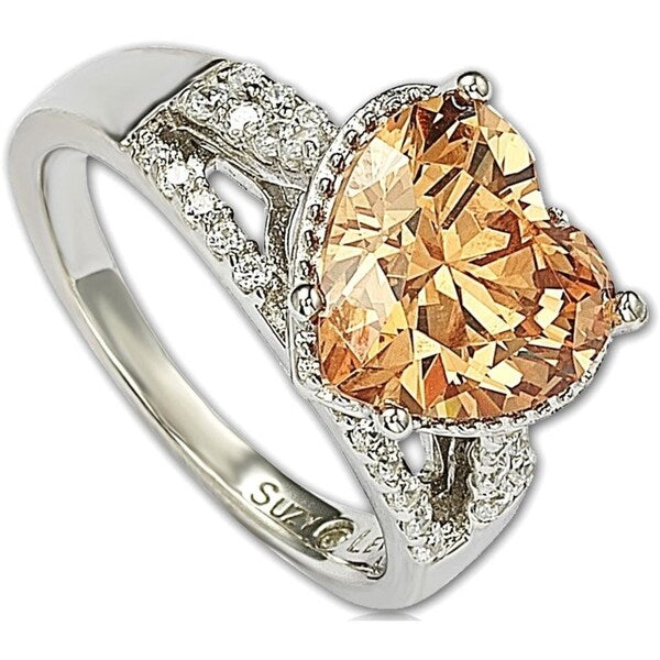 Suzy Levian Sterling Silver Heart-shape Orange Cubic Zirconia Ring