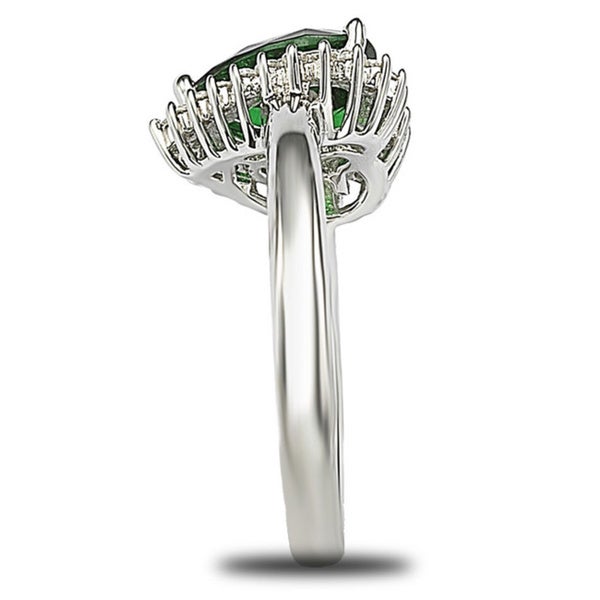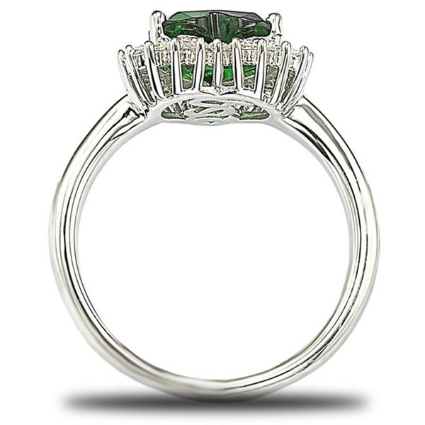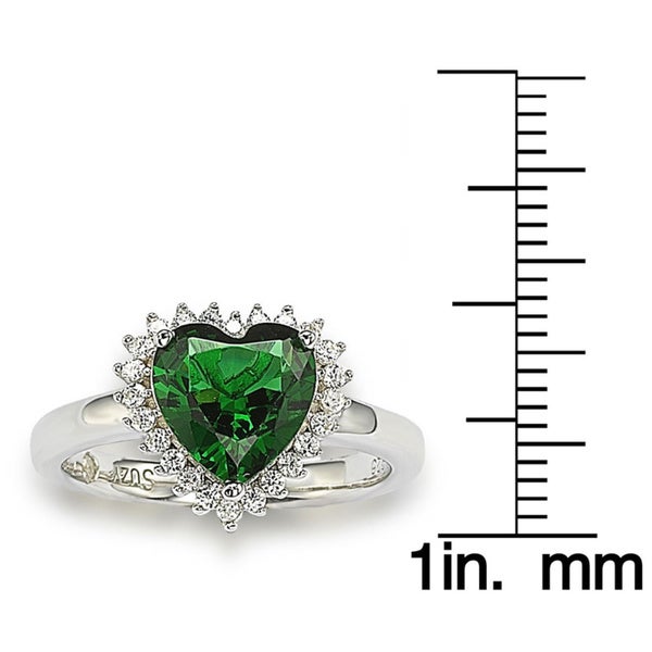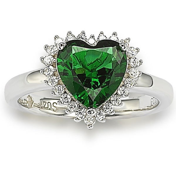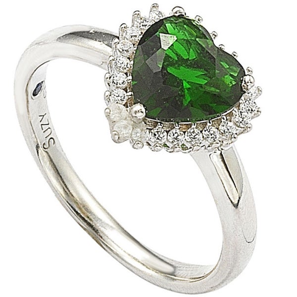 Suzy Levian Sterling Silver Heart-shaped Green Cubic Zirconia Ring