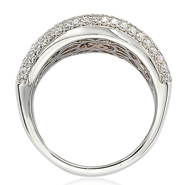 Suzy Levian Sterling Silver Cubic Zirconia Micro Pave Wide Band Ring