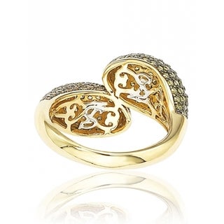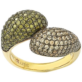 Suzy Levian Sterling Silver Brown and Green Cubic Zirconia Bypass Ring