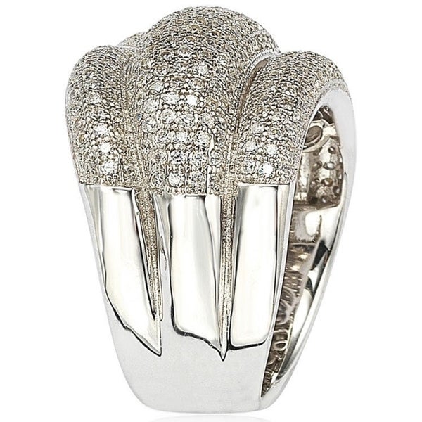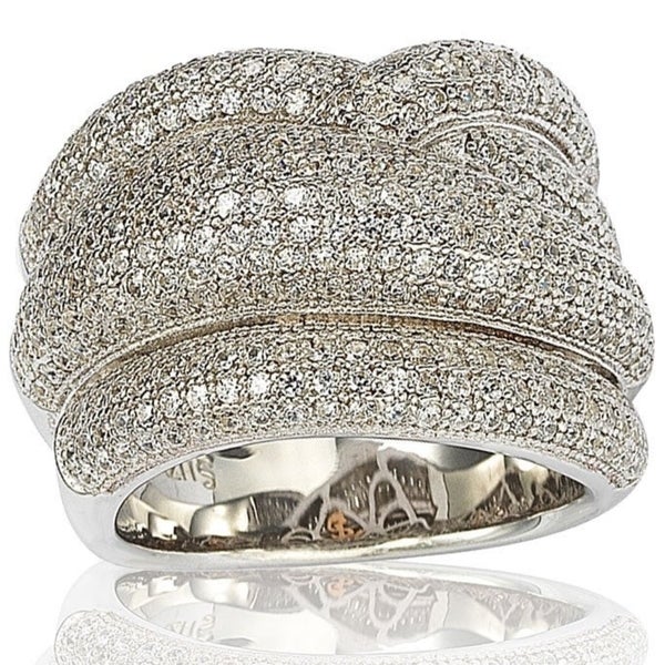 Suzy Levian Sterling Silver Micro Pave Cubic Zirconia Crossover Wide Band Ring