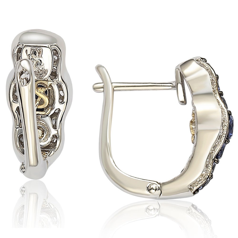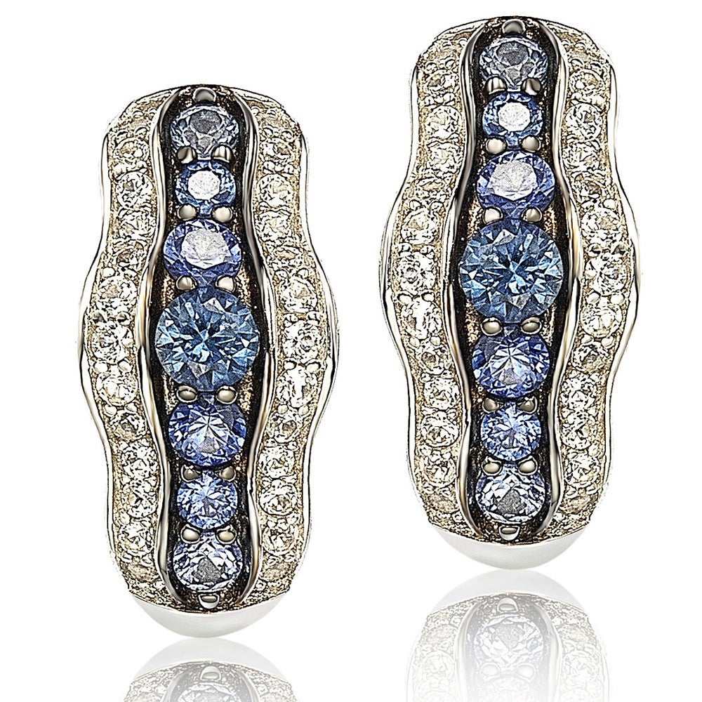 Add luster to your look with these magnificent earrings. From the Caribbean blues collection, these gorgeous sparkles 'latch' right onto any look, featuring natural blue sapphires (2.40 ct) and pave created white sapphires (0.62 ct) with natural fancy brown diamonds(.02 ct). Hand set in sterling silver, with a unique designer Suzy Levian gallery and 18K gold logo.