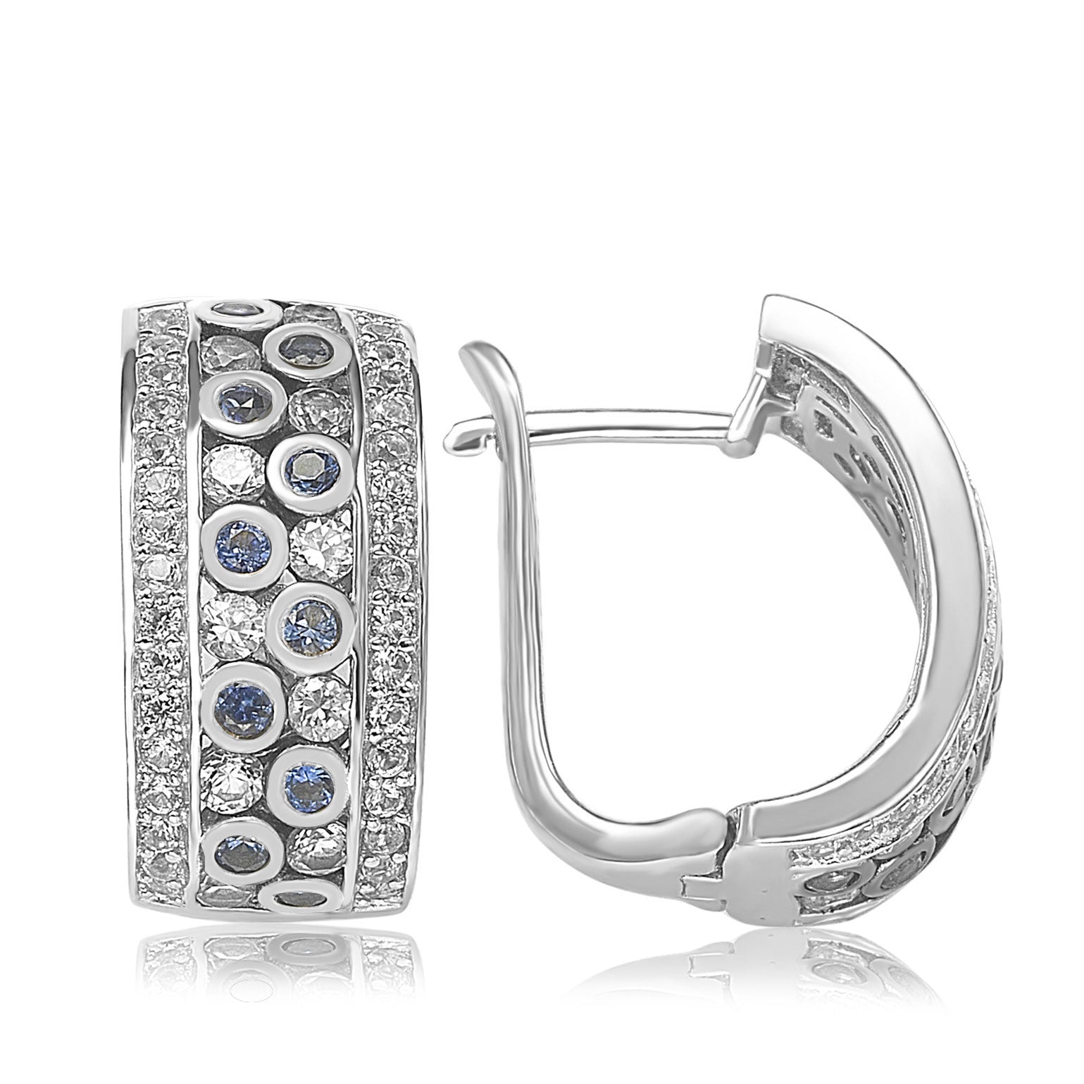 Suzy Levian Blue Sapphire and Diamond in Sterling Silver Earring