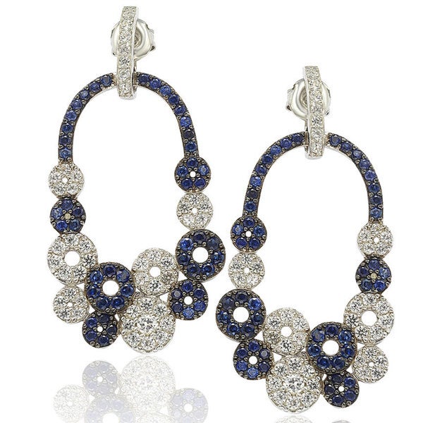 With its mesmerizing design, these gorgeous earrings make for a sparkling delight from the Caribbean blues collection, featuring natural blue sapphires (3.26 ct), and created white sapphires (2.16 ct), with natural fancy brown diamonds (.02 ct). Our gems are always hand set in sterling silver, with a unique designer Suzy Levian gallery and 18K gold logo.