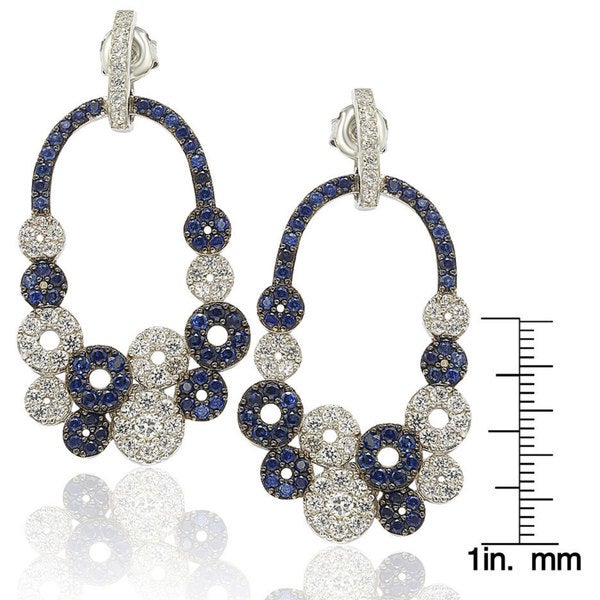 Suzy Levian Sterling Silver and 18k Gold Sapphire and Diamond Multi-circle Earrings
