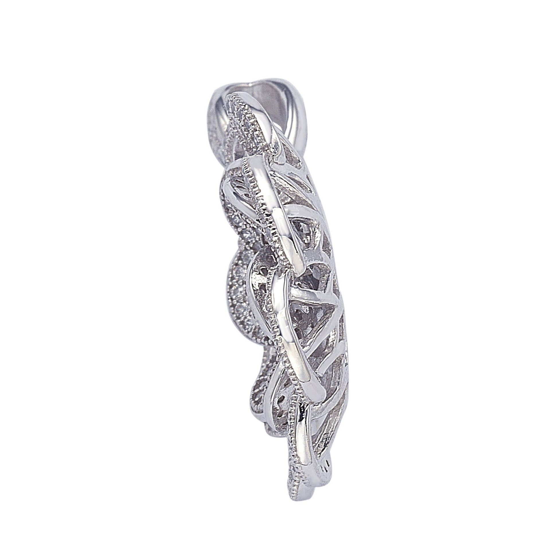 Flashy and floral this pendant from the "Botanical Gardens" collection by Suzy Levian is the perfect addition to your accessory collection featuring white cubic zirconia hand set in sterling silver. This gorgeous sparkling pendant pull together any look you're going for. With a floral style and an overlaying swirl design filled with 100's of pave cubic zirconia gemstones, tis gorgeous Suzy Levian pendant will make the perfect gift for any loved one, especially yourself! Every pendant comes with a complimentary 18" sterling silver cable chain as is beautifully packaged with special love and care.