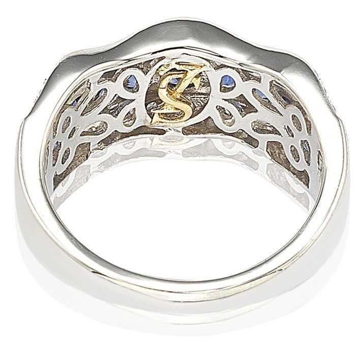 Suzy Levian Sapphire and Diamond Accent in Sterling Silver Wavy Ring