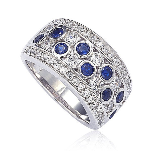 From the Caribbean blues collection, this ring flaunts modern chic from every angle, featuring natural blue sapphires (1.34 ct) and created white sapphires (2.41 ct) with a natural fancy brown diamond (.02 ct) hand set in sterling silver with a unique designer Suzy Levian gallery and 18K gold Suzy Levian logo. This ring is designed by Suzy Levian with a message. By creating jewelry that is beautiful inside and out, Suzy Levian's message is revealed through her hidden brown diamond set in the shank of this ring to empower women to discover their inner strength, power and beauty. This ring has a closed under-gallery for comfort fit with solid 18k gold, highlighting Suzy Levian's Suzy Levian logo. 'Together we can inspire the world to appreciate the diamond in ourselves.' - Suzy Levian