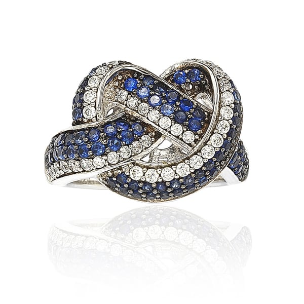 Suzy Levian Sapphire and Diamond in Sterling Silver and 18K Gold Love Knot Ring