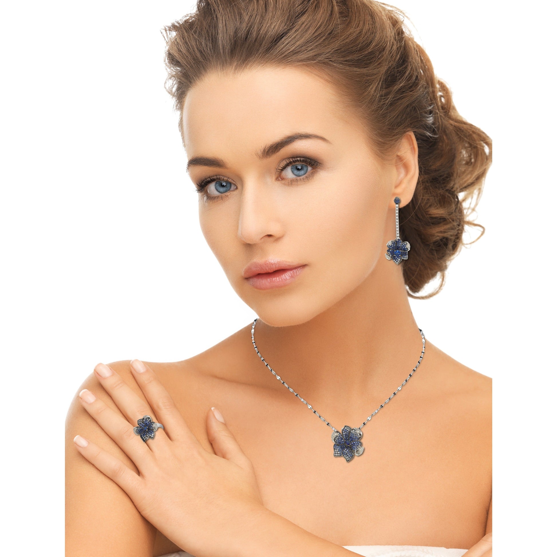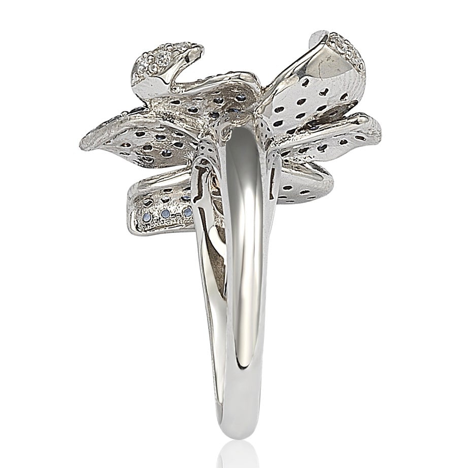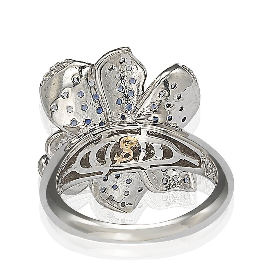 Suzy Levian Sapphire and Diamond in Sterling Silver Flower Petal Ring