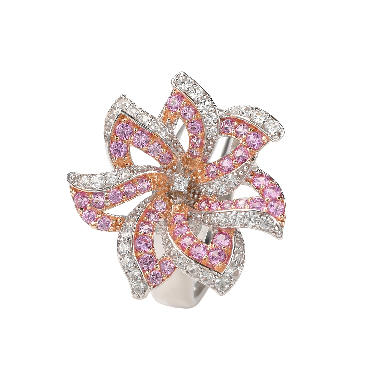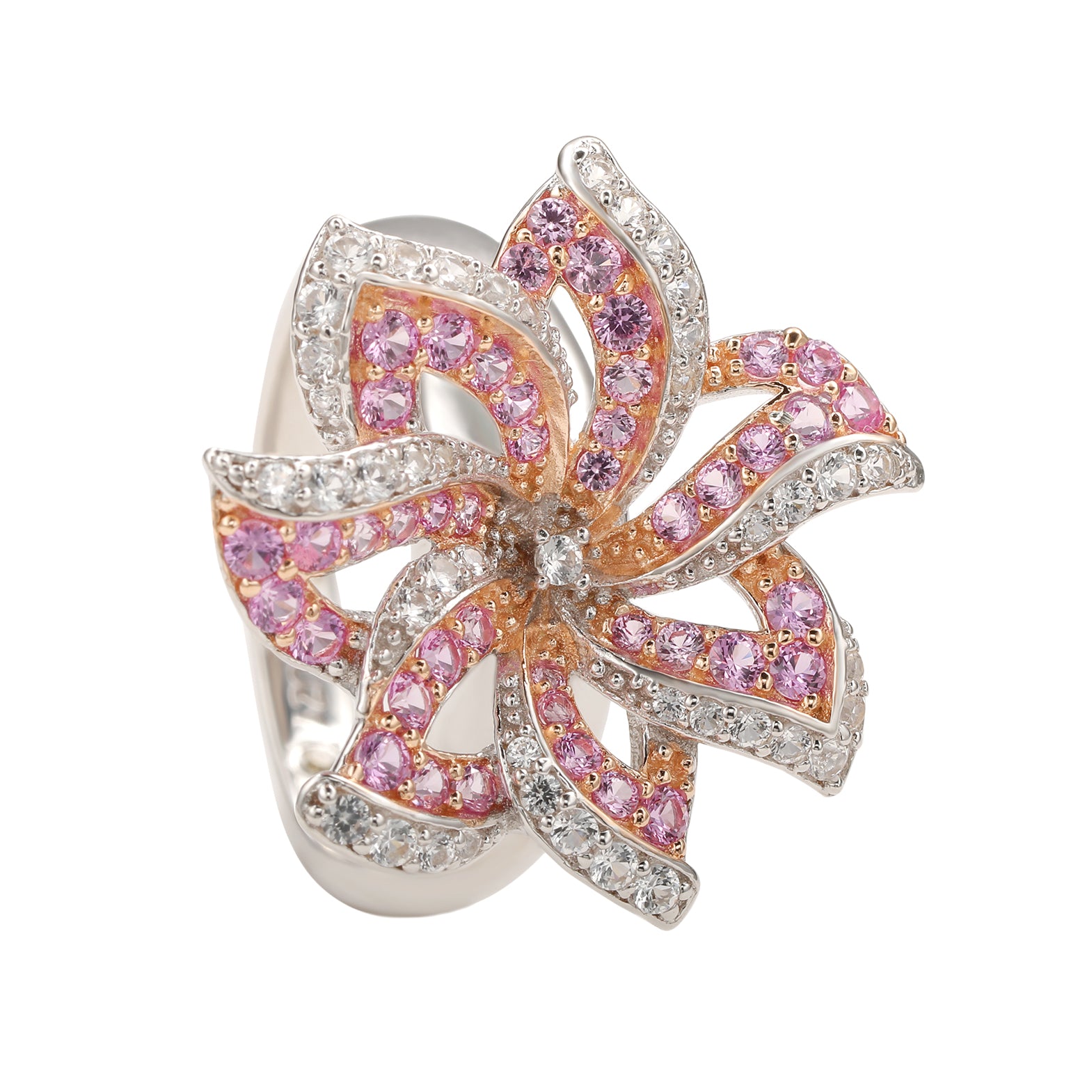 Suzy Levian Pink Sapphire and Diamond in Sterling Silver Flower Ring
