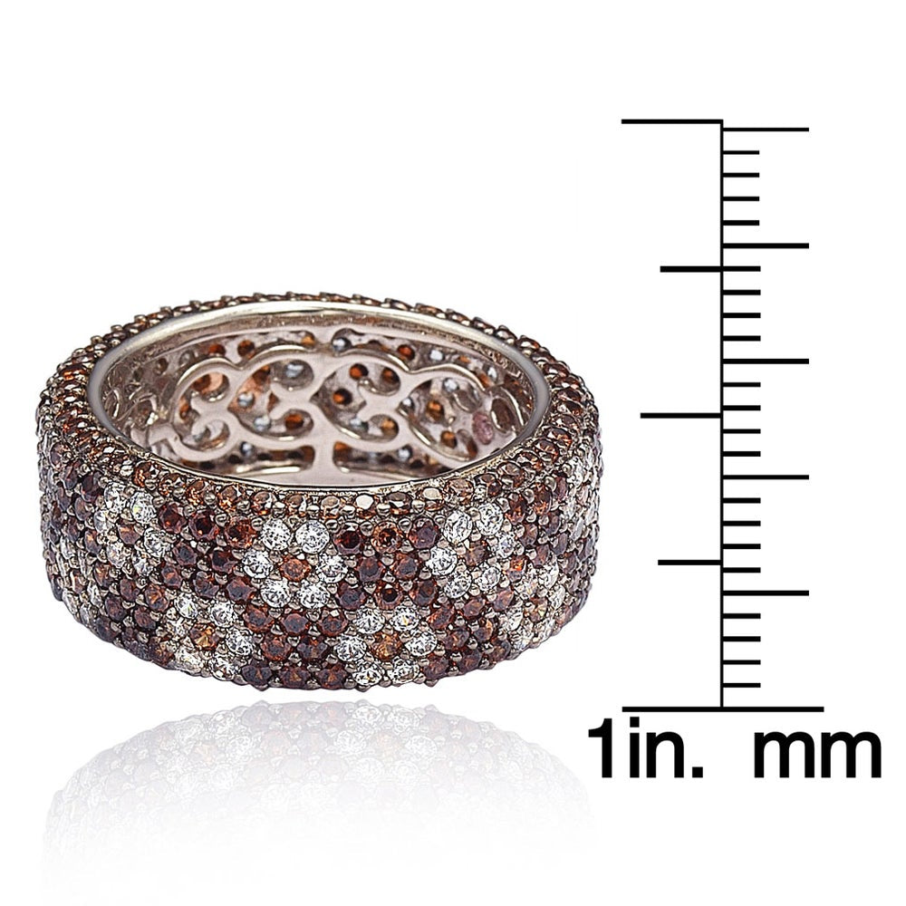 Suzy Levian Sterling Silver Cubic Zirconia Brown and White Flower Eternity Band