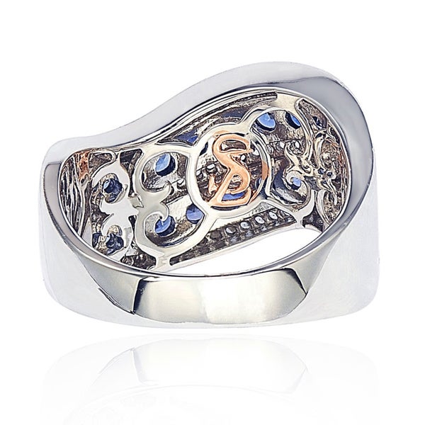 Suzy Levian Sterling Silver/ 18k Gold 2.49TCW Sapphire and Diamond Accent Wavy Ring