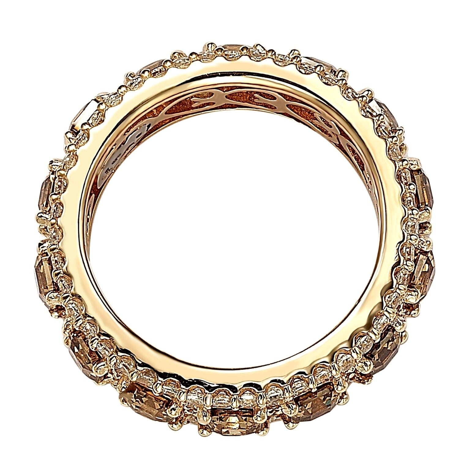 Suzy Levian Rose Sterling Silver Cubic Zirconia Champagne and White Modern Eternity Band