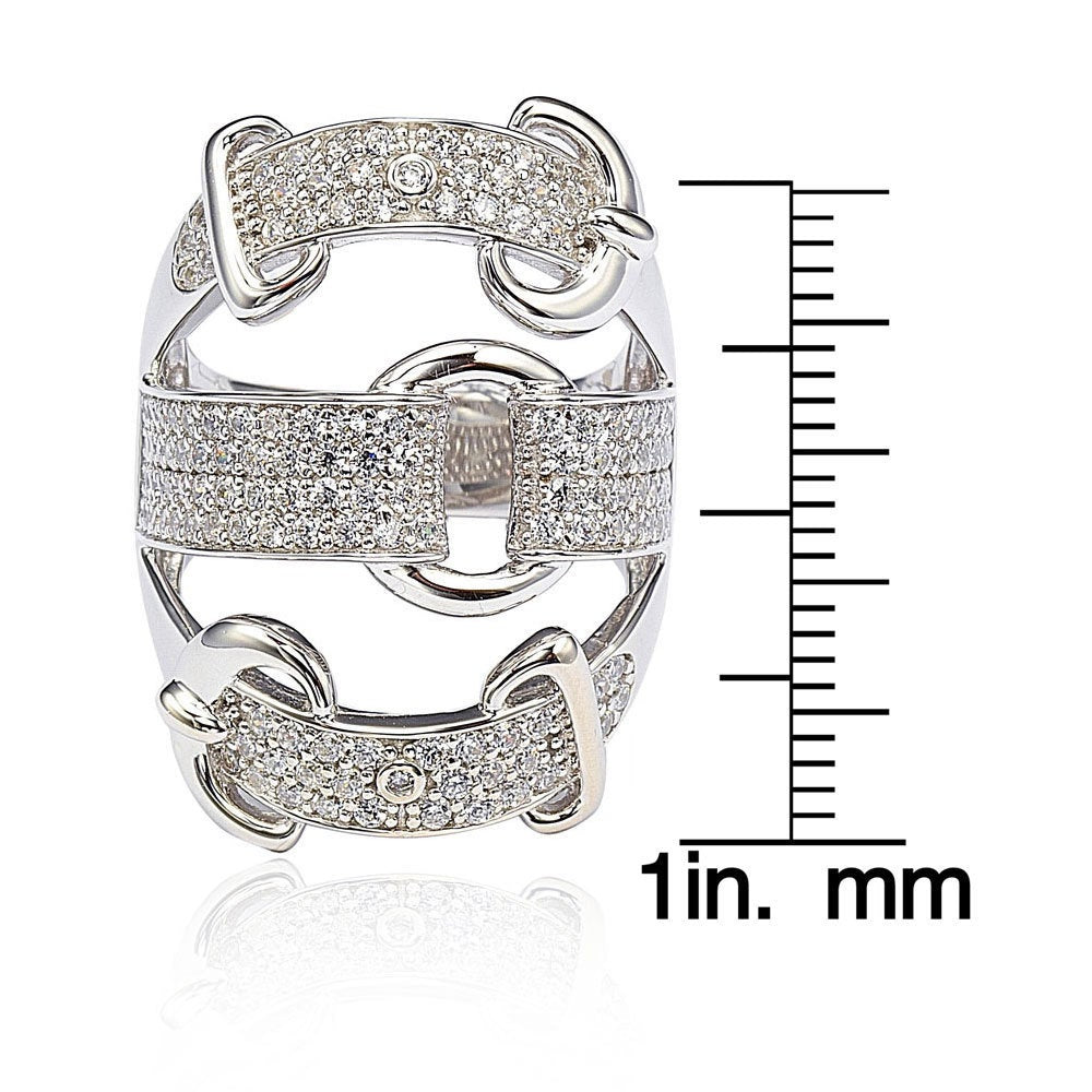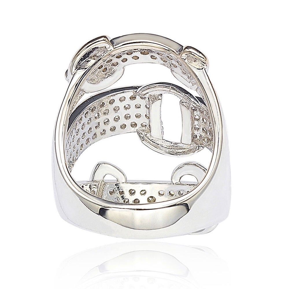 Suzy Levian Sterling Silver Cubic Zirconia White Buckle Ring