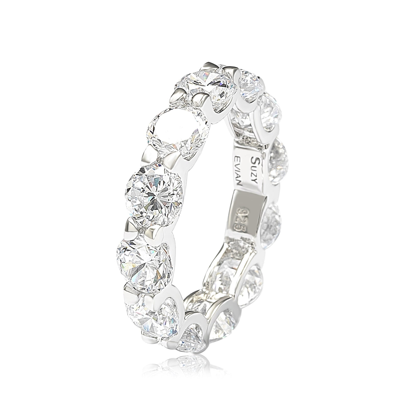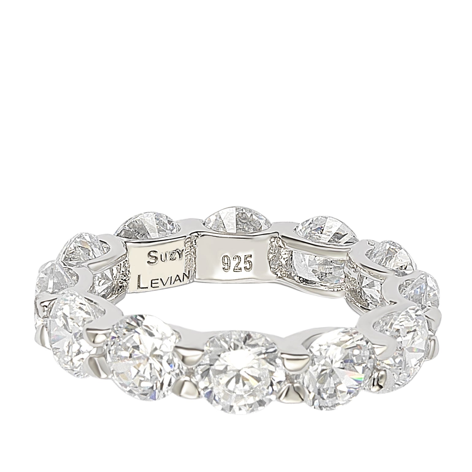 Stunning, timeless and classy. This classic eternity band features high quality round-cut cubic zirconia gemstones, hand set in the trendy yet classy, U-shape setting. Surprise someone special in your life with this luxurious eternity band ring. This Suzy Levian signature piece could be used as a wedding band as well. Light-weighted with a high polish finish, every time your loved one will look at it, it will remind them that your love will lasts for all eternity! Suzy Levian guarantees the use of only high quality and top of the line materials, delivering for you and your loved one only the best.