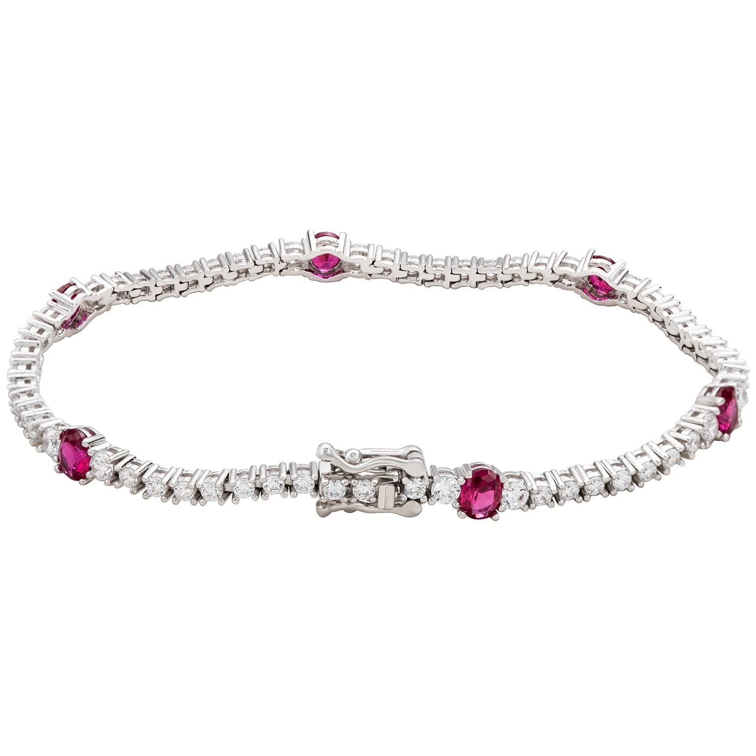 A tasty pattern of 5 mm, prong-set red cubic zirconia are evenly distributed through a line of small pave-set white cubic-zirconia creating a delicious. This Suzy Levian rich bracelet that will be the perfect match to your wardrobe. Perfectly stackable with any Suzy Levian bracelet. Please note that each Suzy Levian creation is handcrafted. All Suzy Levian jewelry are made of 925 sterling silver, high quality and carefully selected cubic zirconia, providing our customers with the finest accessories.A double side lock ensures for an easy, safe and secure fit the whole time it's locked on your wrist.